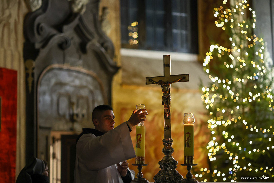 Каталікі і пратэстанты адзначаюць Раство — адно з галоўных хрысціянскіх свят, прысвечанае нараджэнню Ісуса Хрыста. Журналісты Onlíner пабывалі познім вечарам на святочным набажэнстве ў старадаўнім касцёле Божага Цела ў Нясвіжы і падрыхтавалі прыгожы фотарэпартаж.