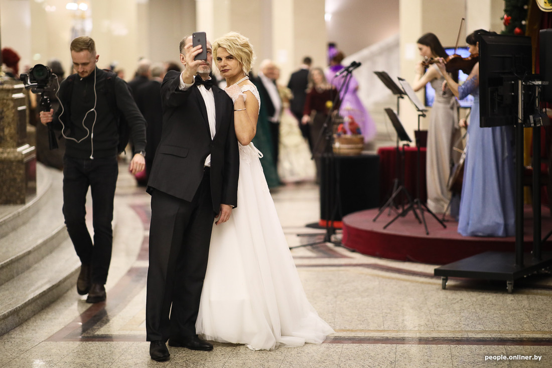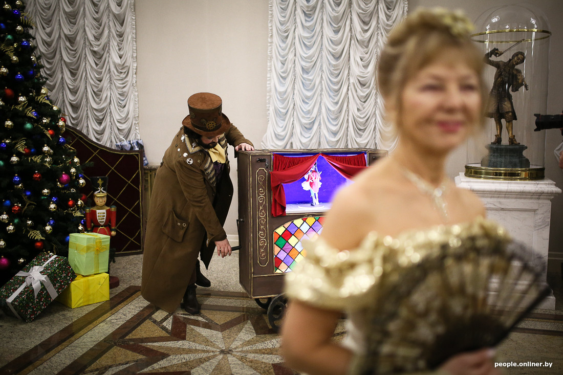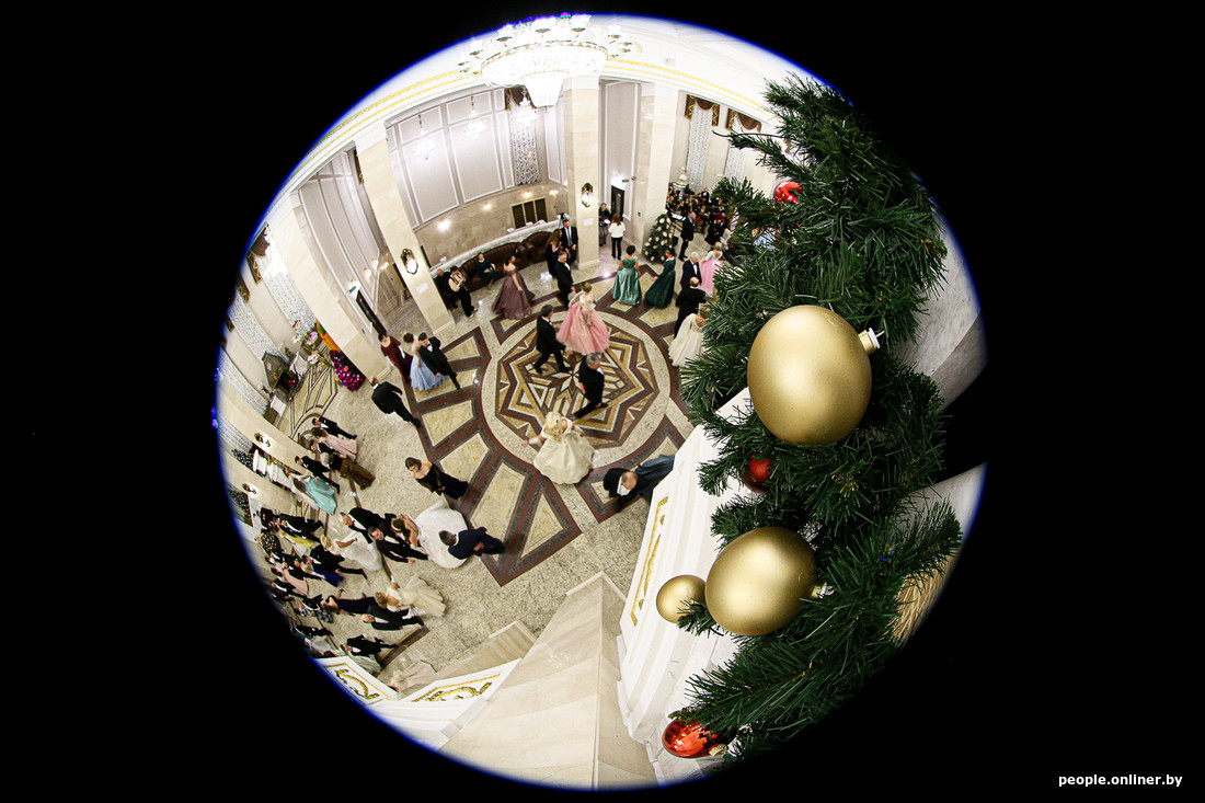 Вечером 13 января в Большом театре Беларуси прошел бал на старый Новый год. Любители танцев в течение двух месяцев репетировали вальс, польку, кадриль, а затем танцевали их в стенах театра. Главная традиция вечера — обязательный дресс-код для участников: пышные юбки в пол и смокинги с бабочками. Показываем, как белорусы красиво встретили новогодний праздник.