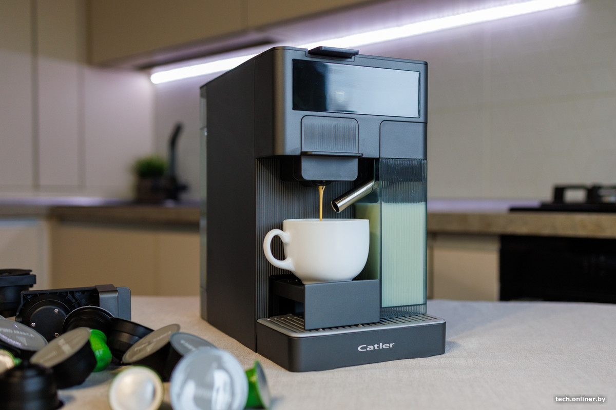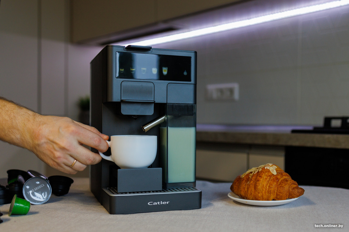 Если молочные напитки для вас не так важны и вы готовы отказаться от автоматического капучинатора, то сможете немного сэкономить. Например, капсульная кофеварка того же бренда Catler ES 701 Porto BH, которая на данный момент стоит 675 рублей, уступает помимо этого только в давлении. При этом вы получаете все ту же поддержку 3 видов капсул и молотого кофе.