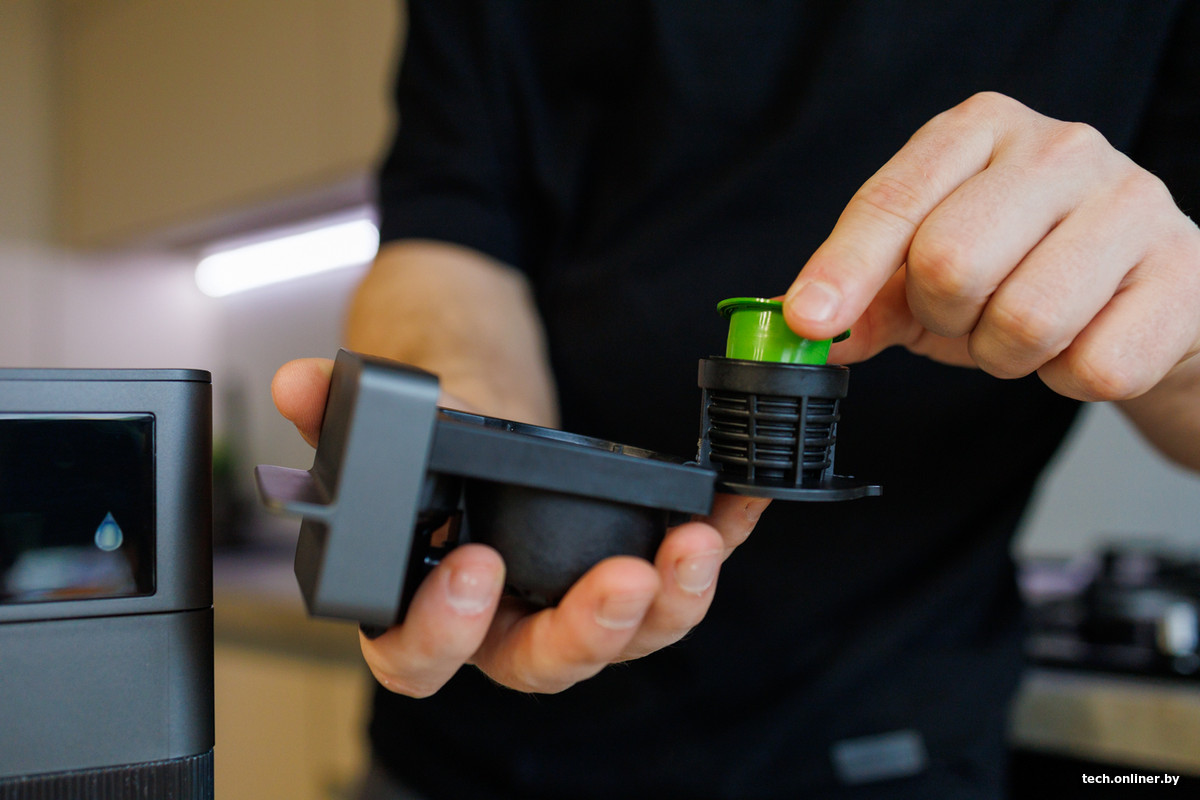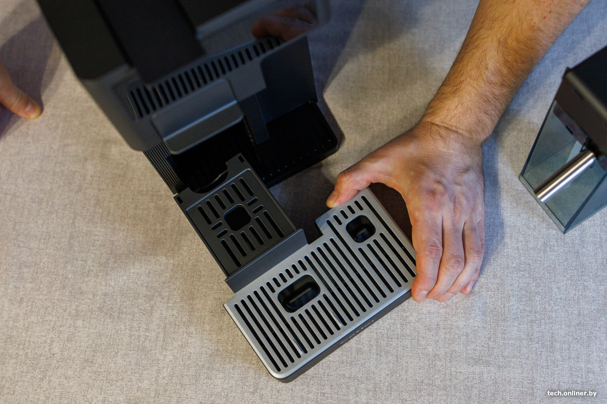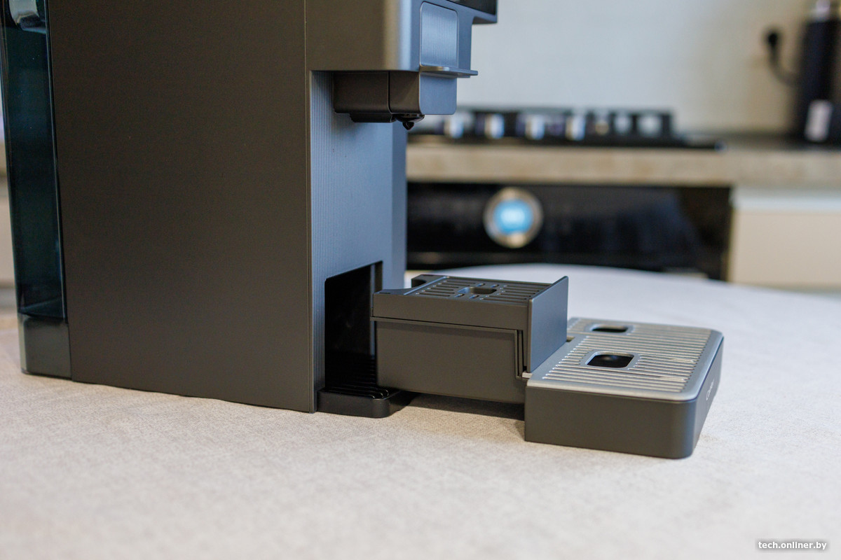 После приготовления трех напитков заметили в поддоне для капель немного воды и решили сразу попробовать его опустошить. Он съемный для удобства обслуживания — получилось это сделать быстро и легко.