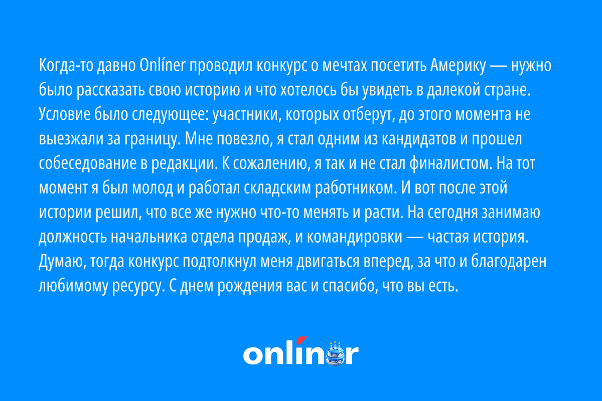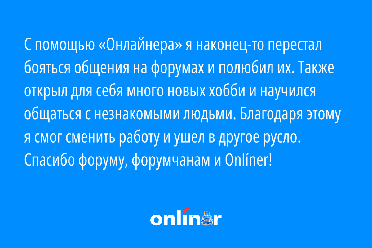 Если бы не Onlíner, возможно, я бы никогда и не осмелился на такой шаг, который в корне поменял мою жизнь в лучшую сторону.