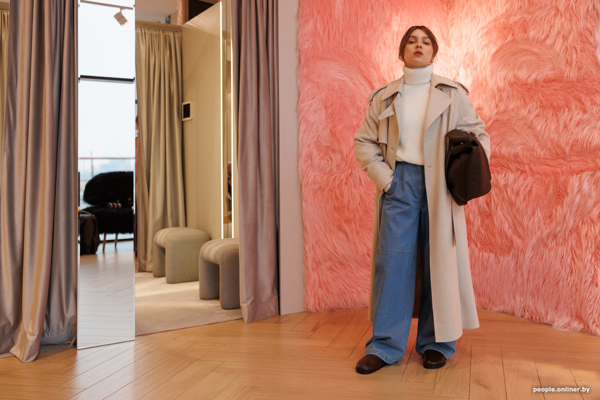 — Вместе с тренчем мы решили показать еще один тренд — штормовик. Это характерный элемент в тренче, который, как правило, не используется в пальто. Он защищает от ветра и выглядит акцентно. Тренч выполнен в нейтральном светлом бежевом оттенке, который тоже актуален этой весной.
