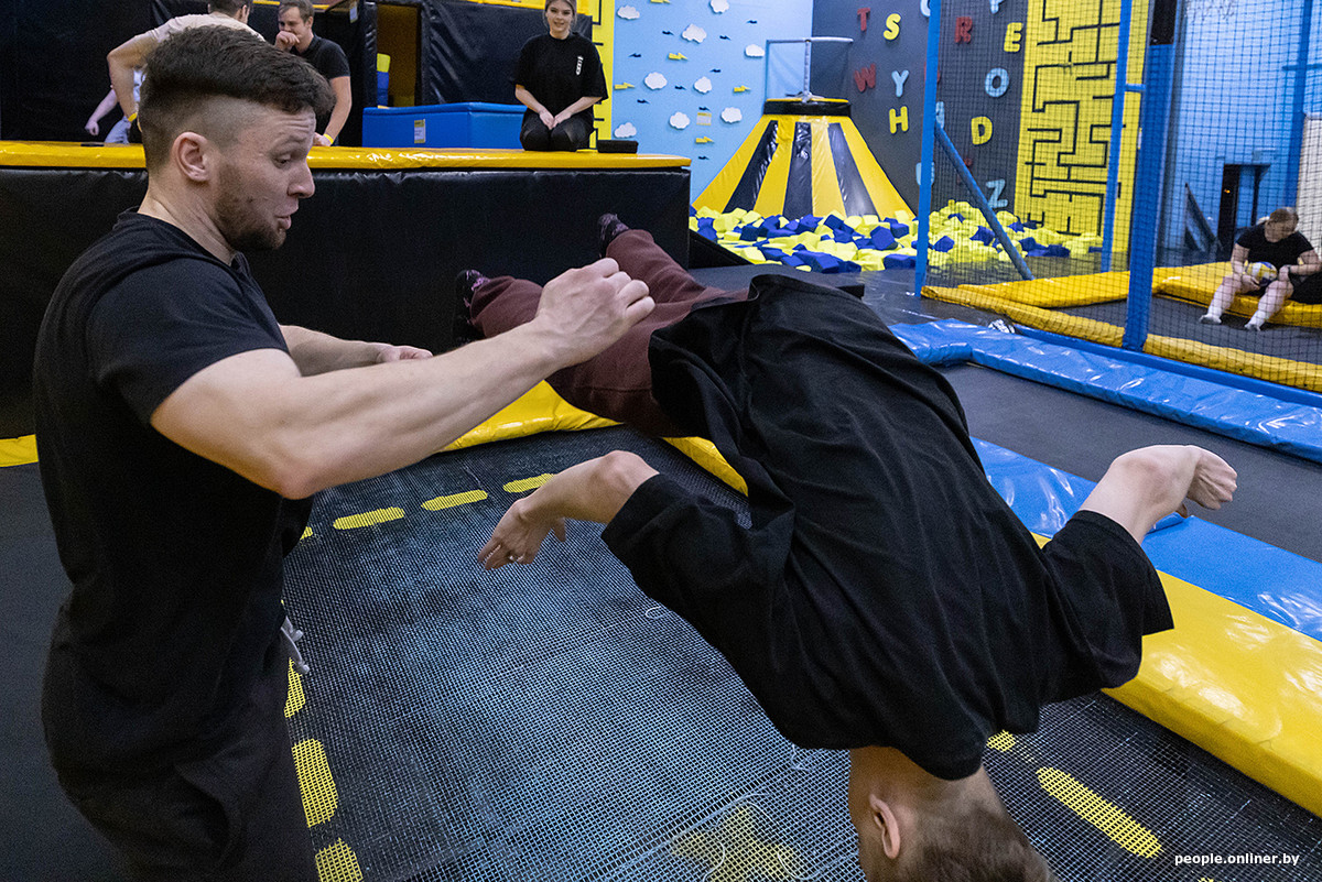 Вы часто встречали паркурщика с образованием физика-ядерщика? А видели, как цирковой гимнаст делает 13 видов сальто на глазах у изумленных детей прямо в батутном центре? Мы тоже нет — до этого дня. А еще до этого дня наш журналист не умел делать сальто назад. И никогда раньше не приземлял его на лицо. Но все когда-то бывает впервые. Совместно с belbet мы начинаем цикл материалов "Эмоции на грани", в рамках которого проверим на прочность различные минские экстремальные (и не очень) развлечения. Сегодня мы пришли в батутный центр в компании паркурщика с 15-летним стажем и действующего воздушного гимнаста цирка, чтобы устроить настоящий батл трюков, которые вам делать нельзя. Слоны уже в посудной лавке — посмотрим, выдержит ли она.