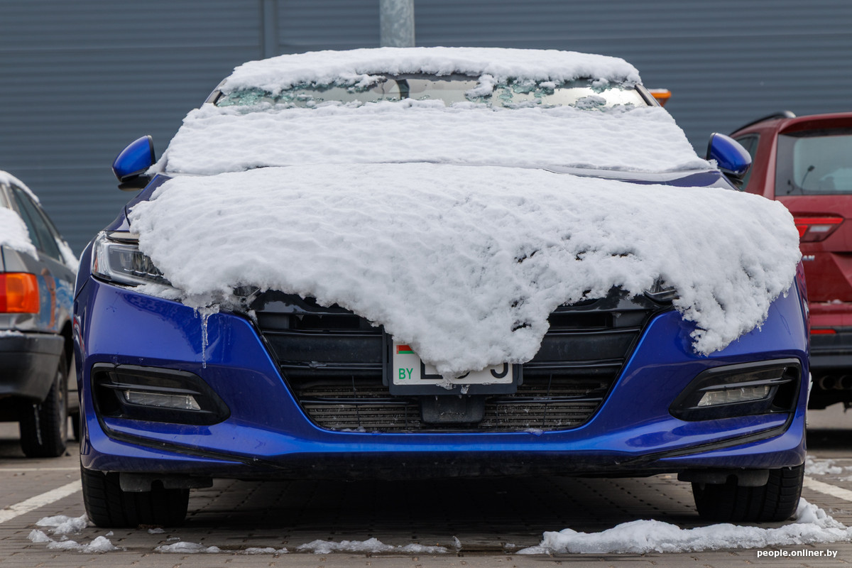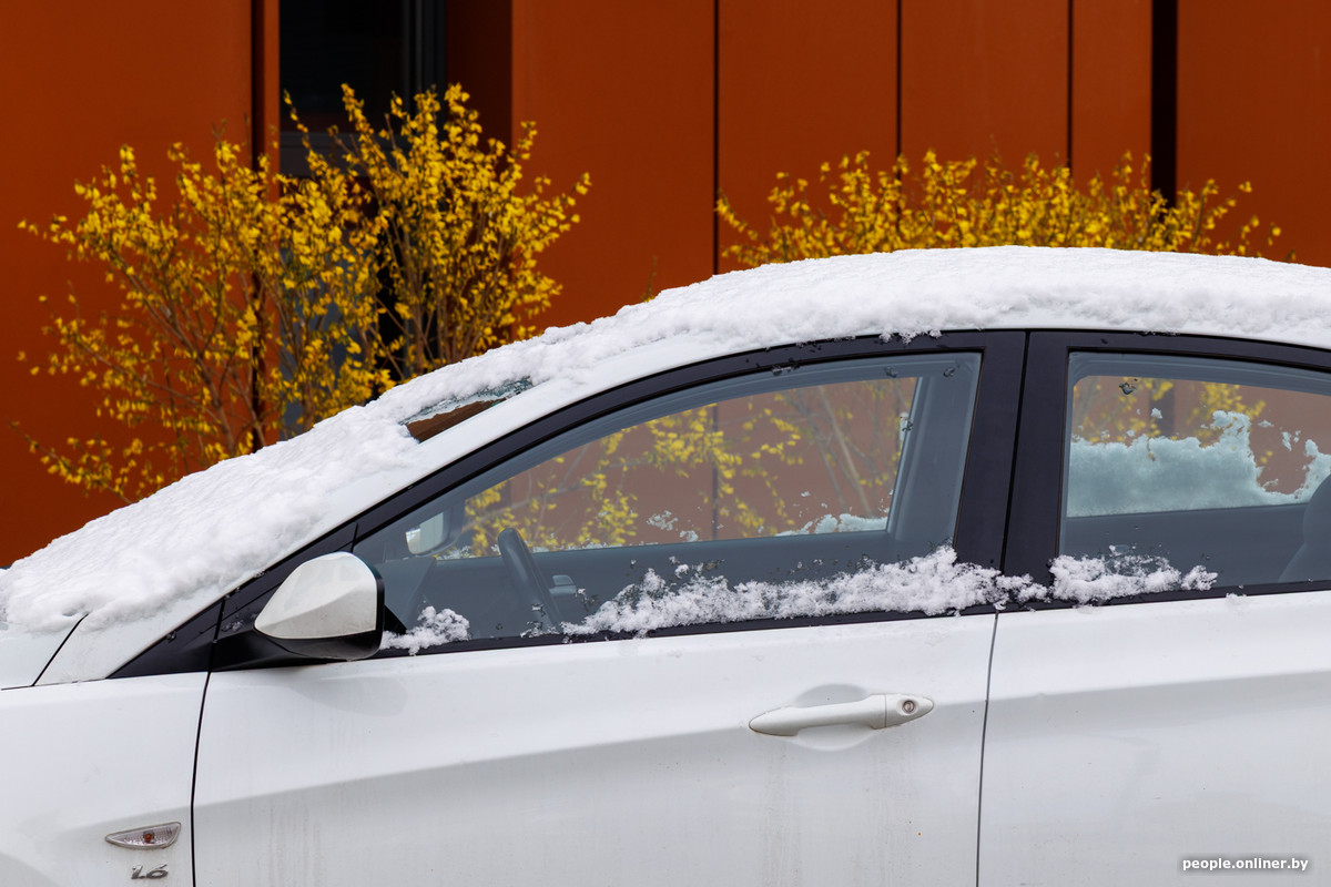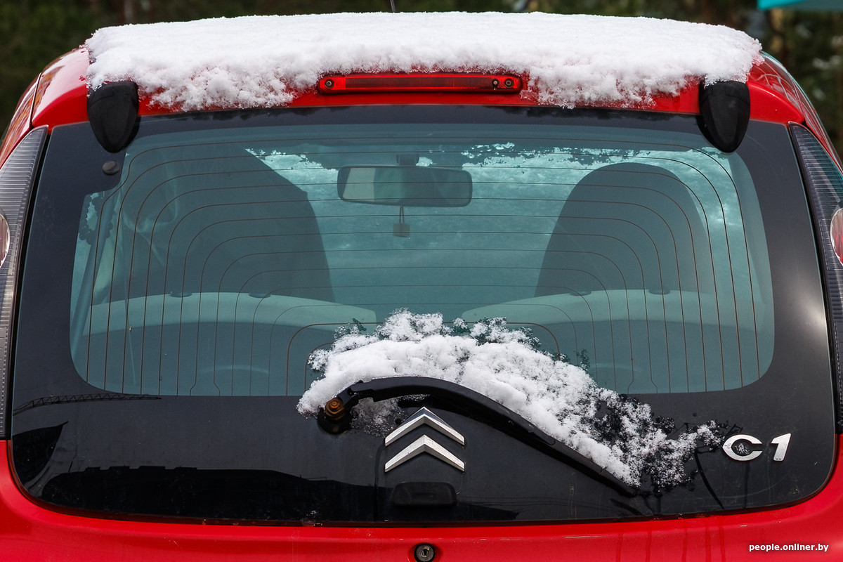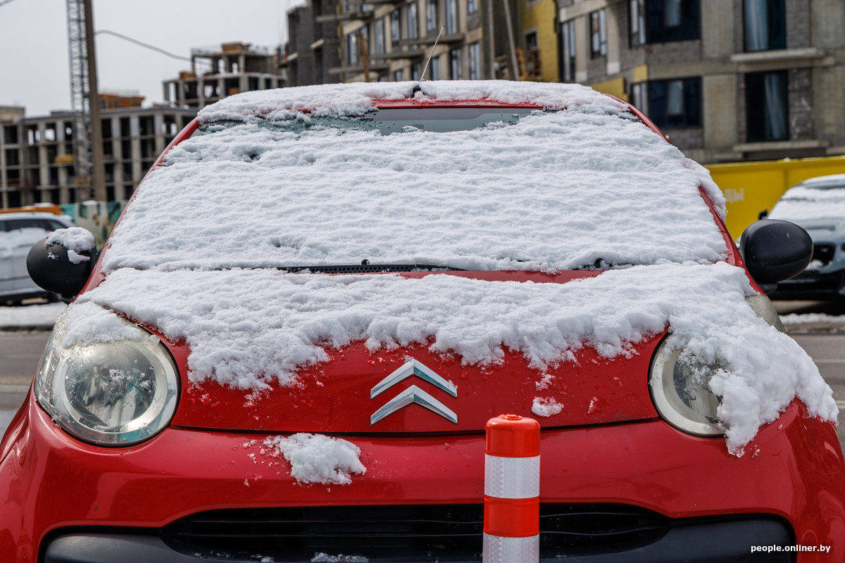 А вот автовладельцам немного повезло: снег с машин начал съезжать сам, особенно с тех, что простояли под солнцем хотя бы час.