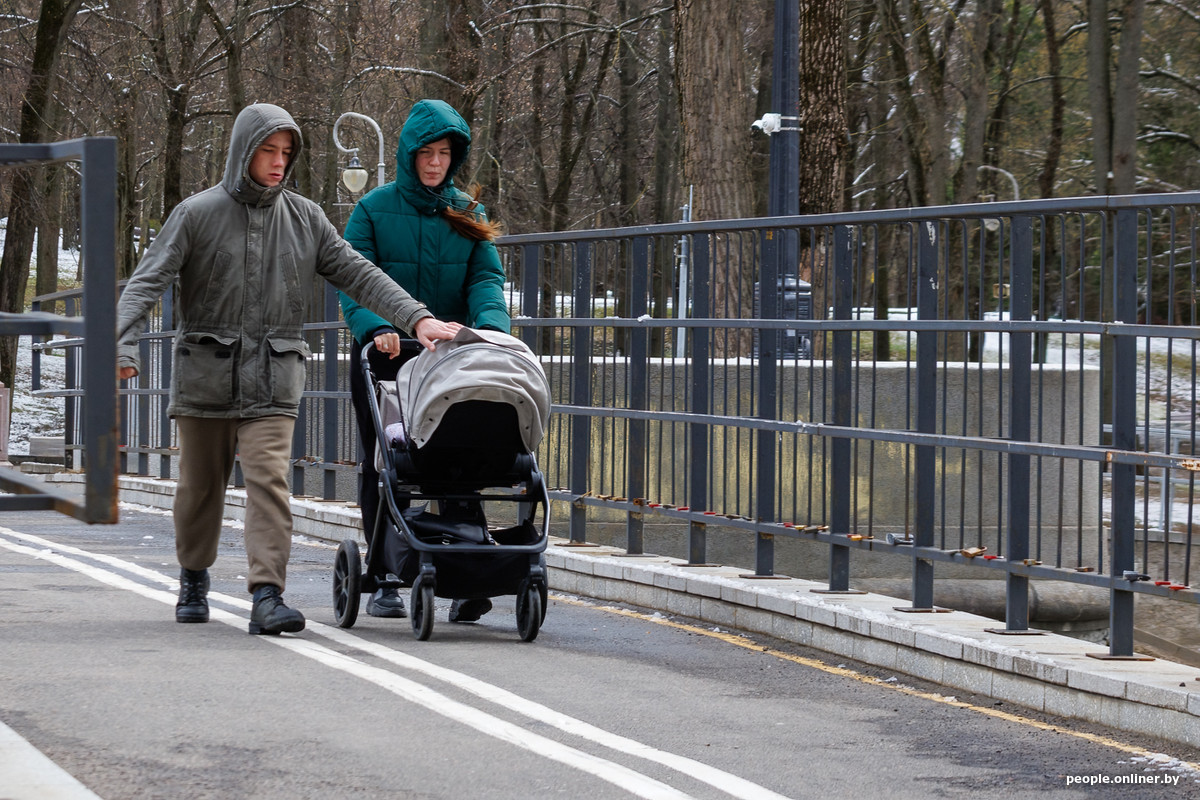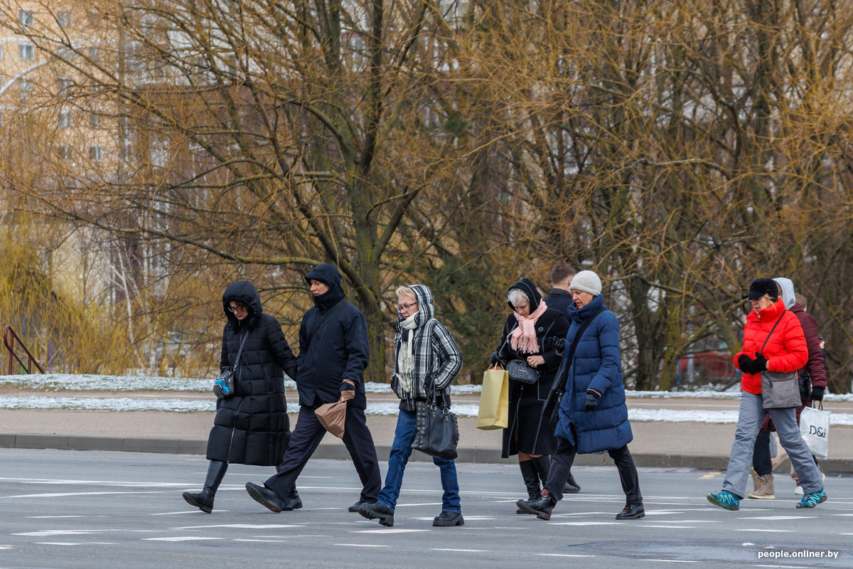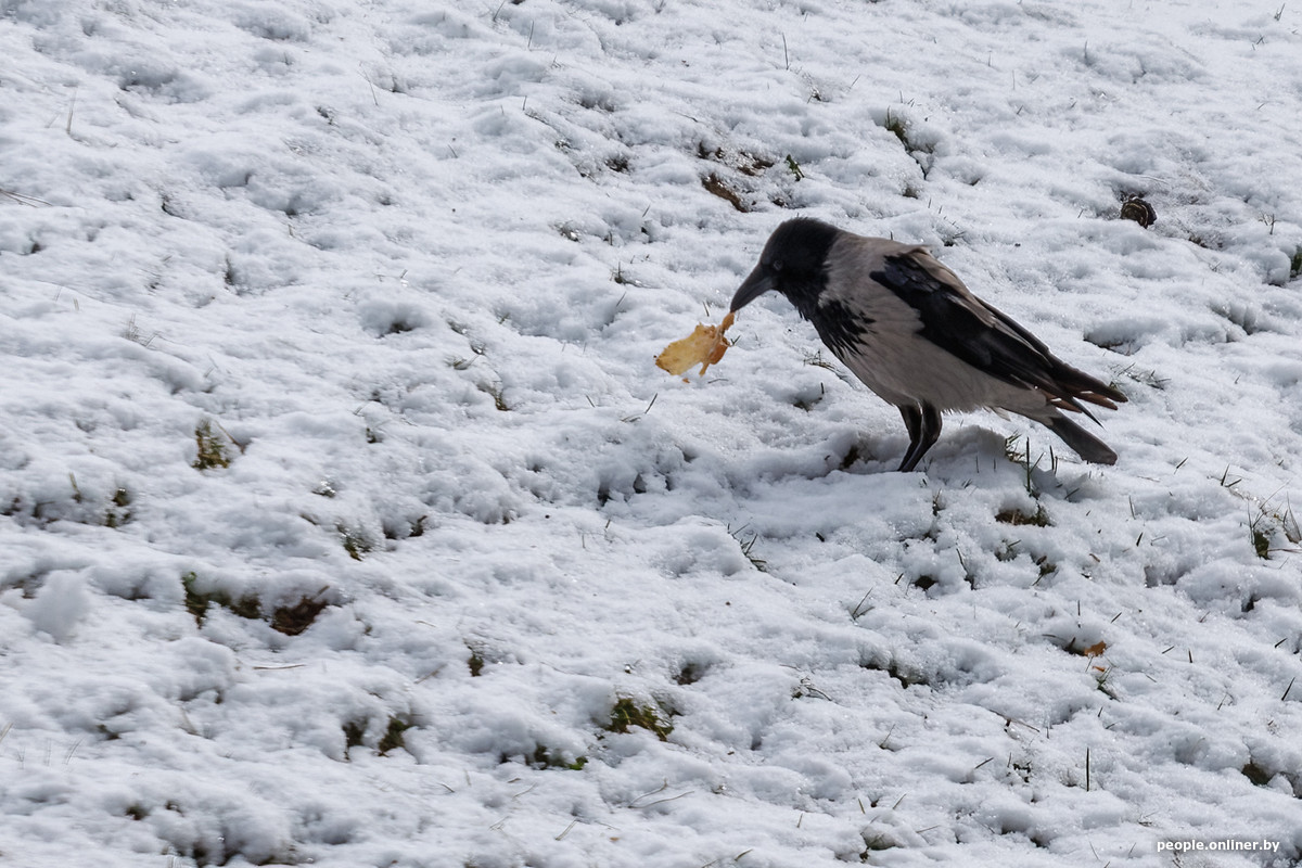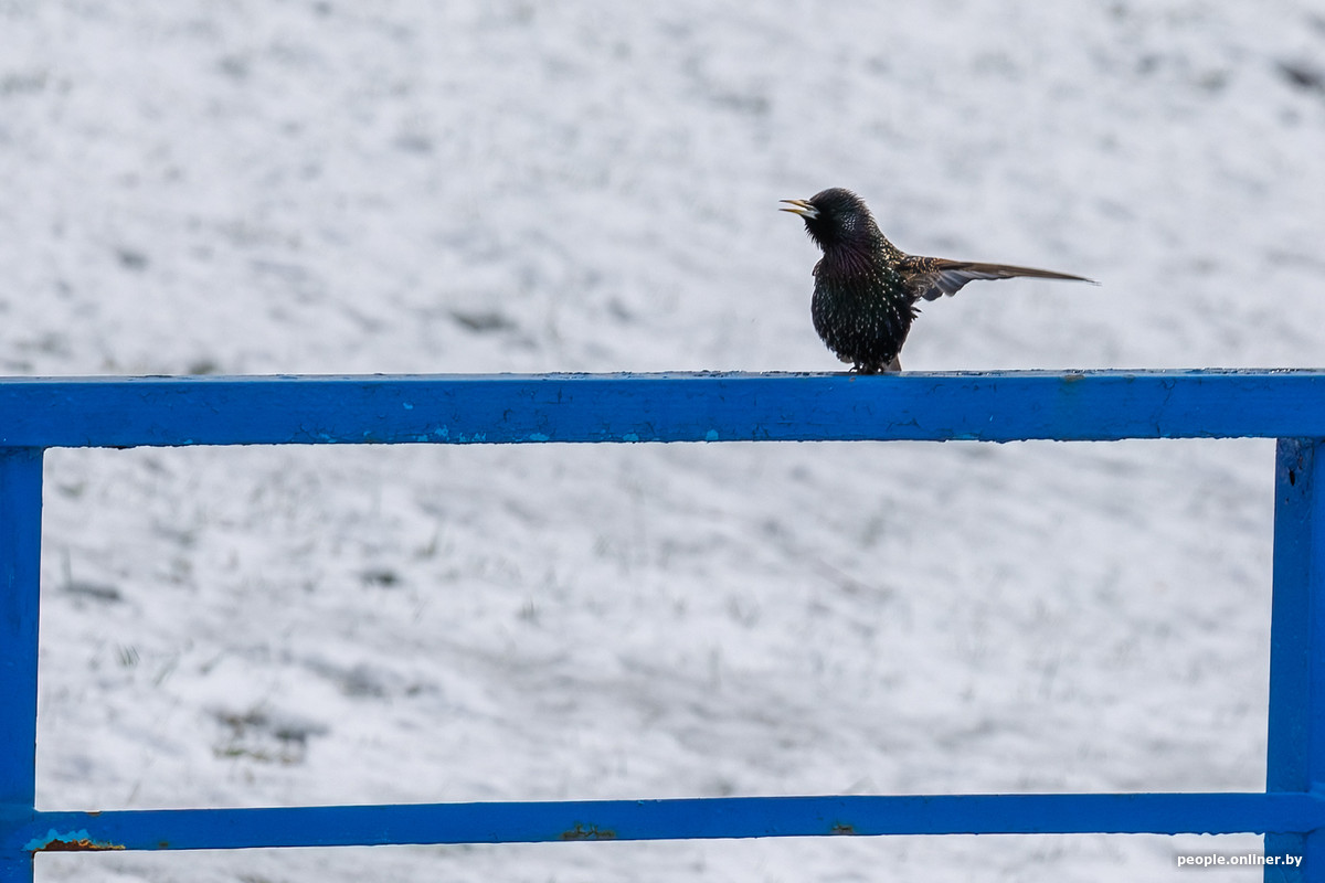 Температура держится около отметки −1°C, а холодный ветер лишь усиливает ощущение не по сезону. На улицах людей мало, птицы, кажется, не в восторге: сидят нахохлившись и поглядывают вверх с недоверием.