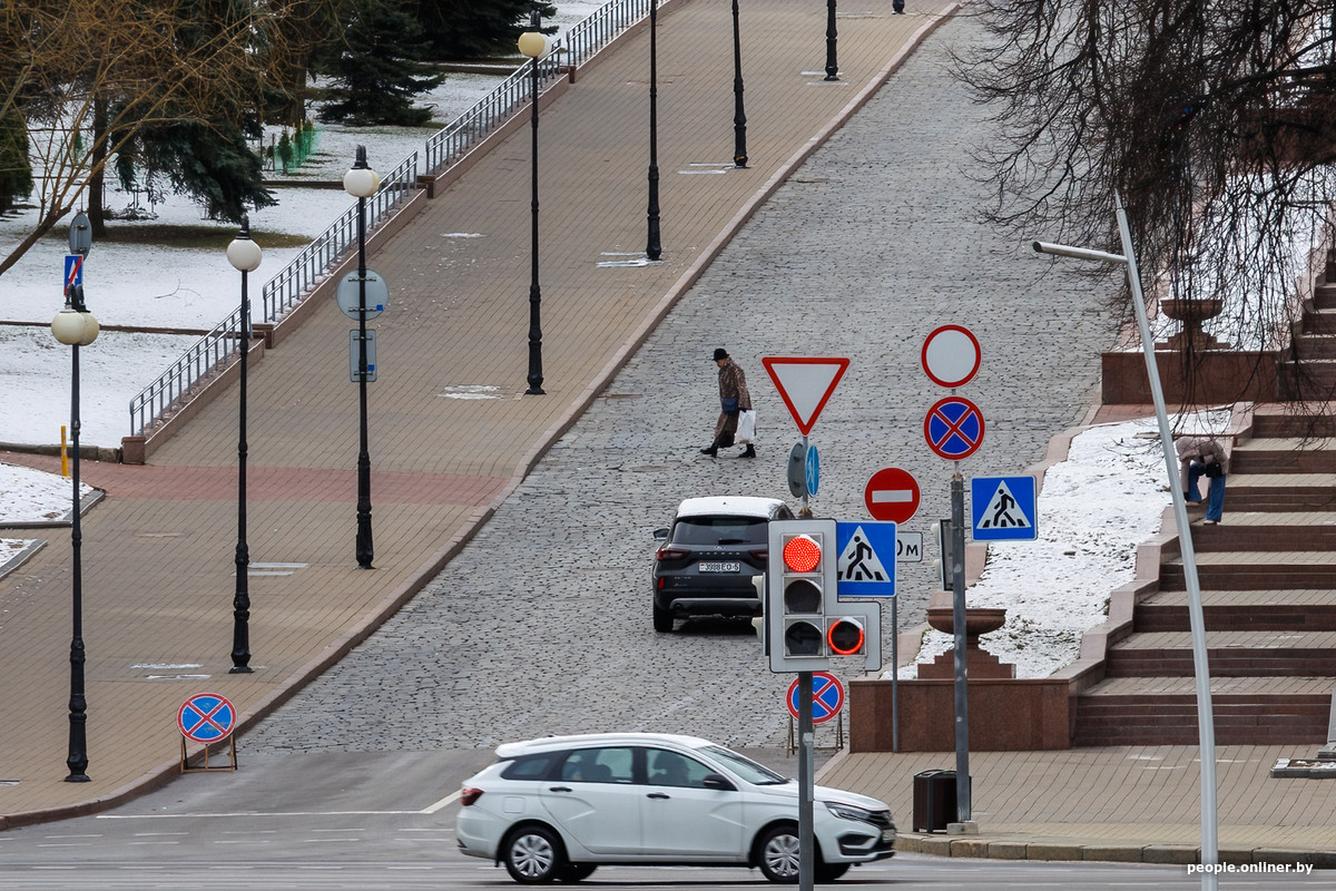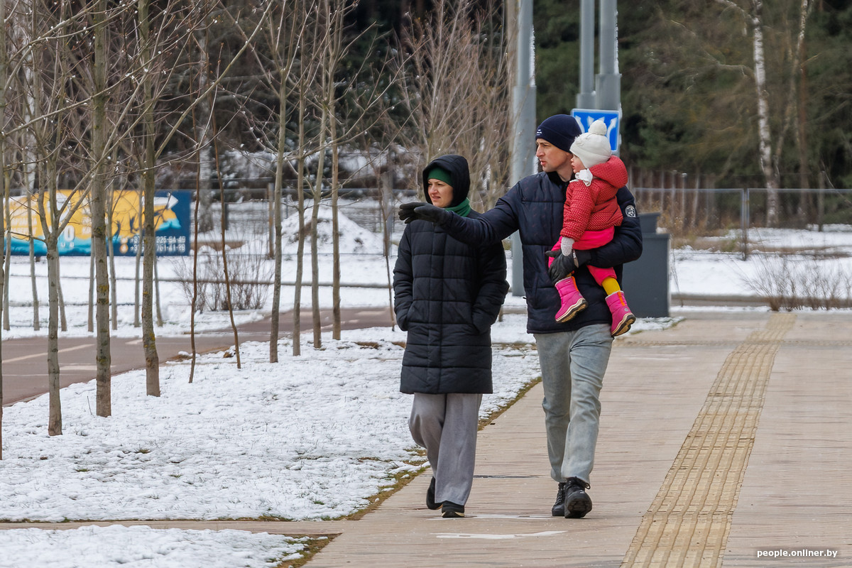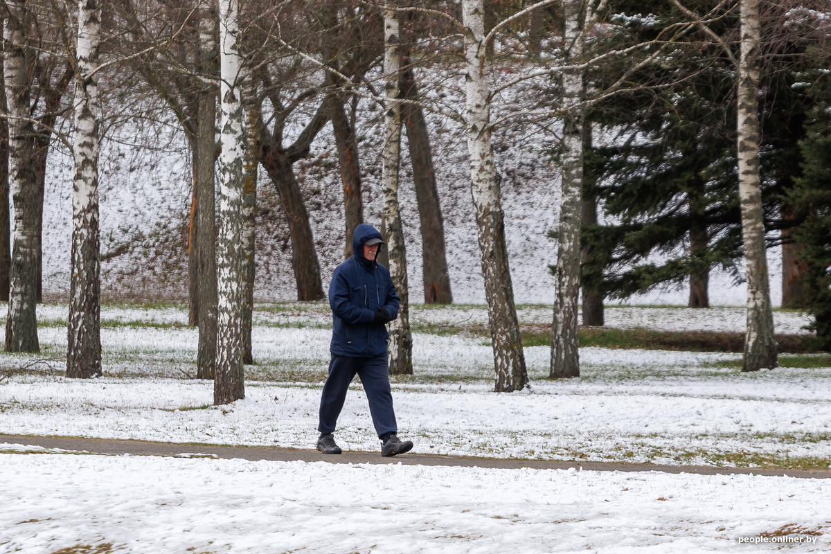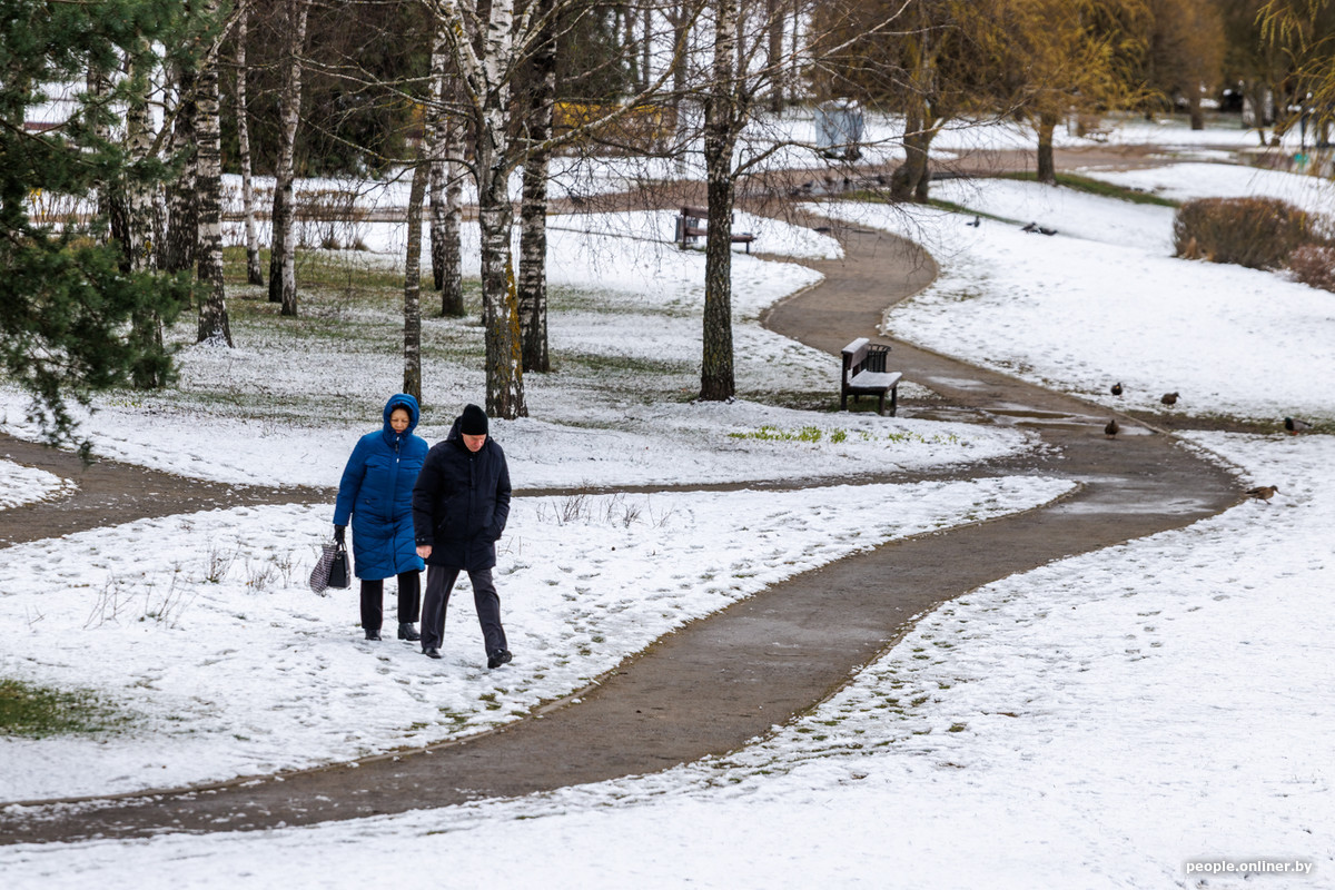 Температура держится около отметки −1°C, а холодный ветер лишь усиливает ощущение не по сезону. На улицах людей мало, птицы, кажется, не в восторге: сидят нахохлившись и поглядывают вверх с недоверием.
