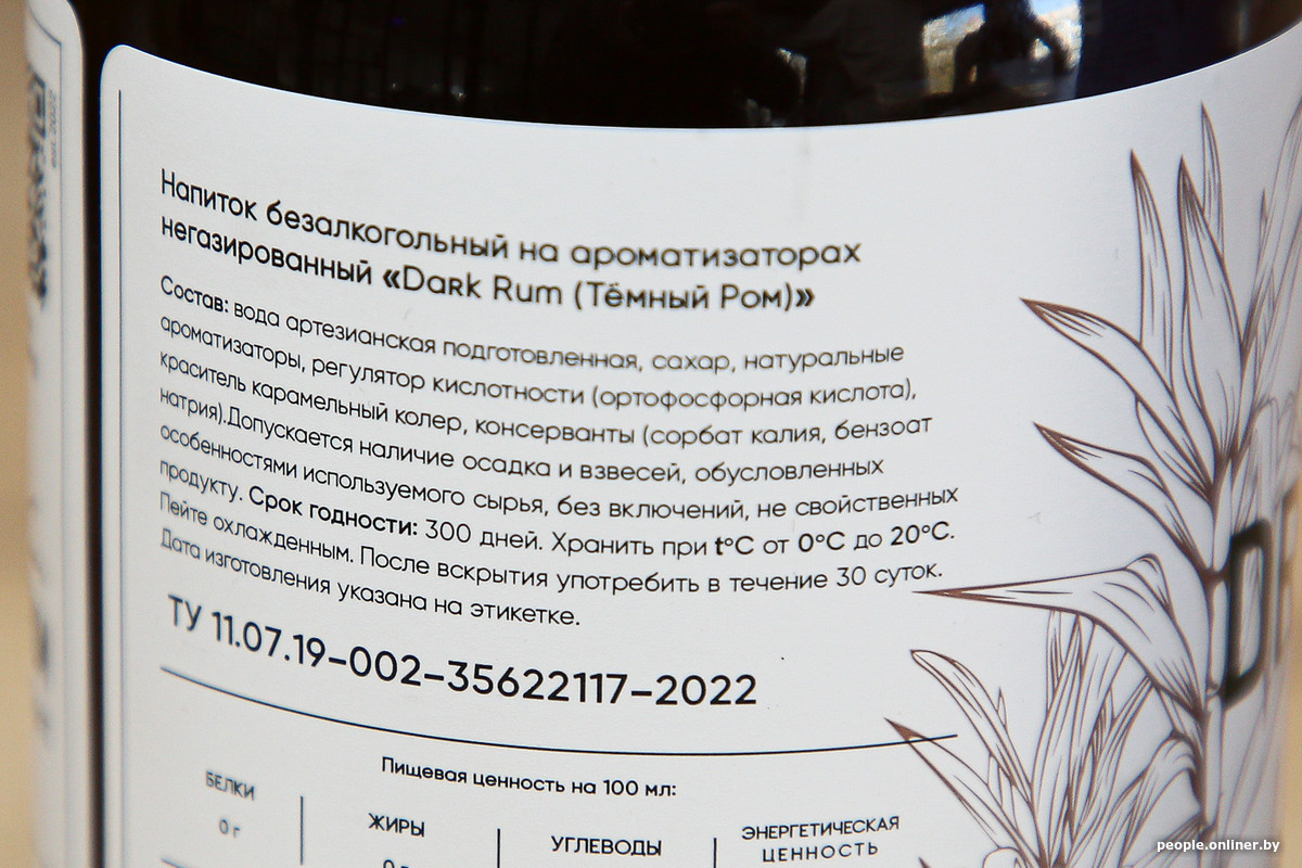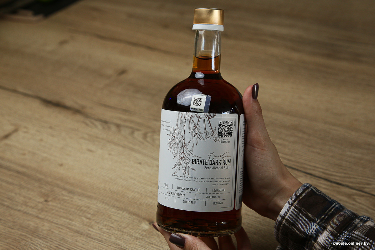 На полках белорусских супермаркетов выбор видов безалкогольного алкоголя далеко не самый выдающийся. Если вынести за скобки уже ставшие привычными пивные «нулевочки», вина и «детское» шампанское, то в свободном доступе найдется в основном лишь продукция российской марки Drinksome. Бренд, называющий себя производителем «первого и единственного безалкогольного алкоголя в России», предлагает выбор игристых и коктейлей-«аперолек» в жестяных банках, а также имитаторы ликеров, джинов и темного рома. Мы остановили выбор на последнем.