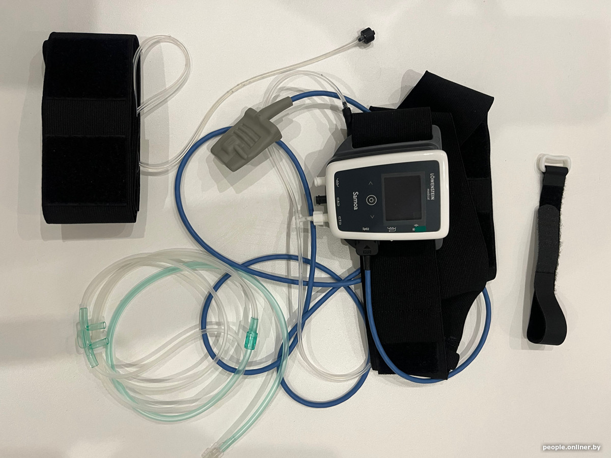 Кстати, второй пациент проходил упрощенный вариант обследования. Забирать и отвозить оборудование нужно было самому и уже не в металлическом кейсе, а в тканевой сумке. В него входили все те же два пояса, но никаких закрепляющихся на теле датчиков, только канюля в нос и насадка на палец. В этом случае не отслеживается, например, движение глаз и подбородка, но если проблема именно в храпе, то данных вполне достаточно.