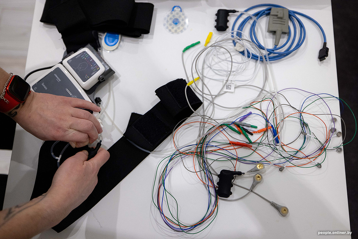 Теперь к сути. Мы проходили разные виды полисомнографии. В одном случае оборудование подключает медсестра, во втором — ты сам. Начнем с более сложного варианта.