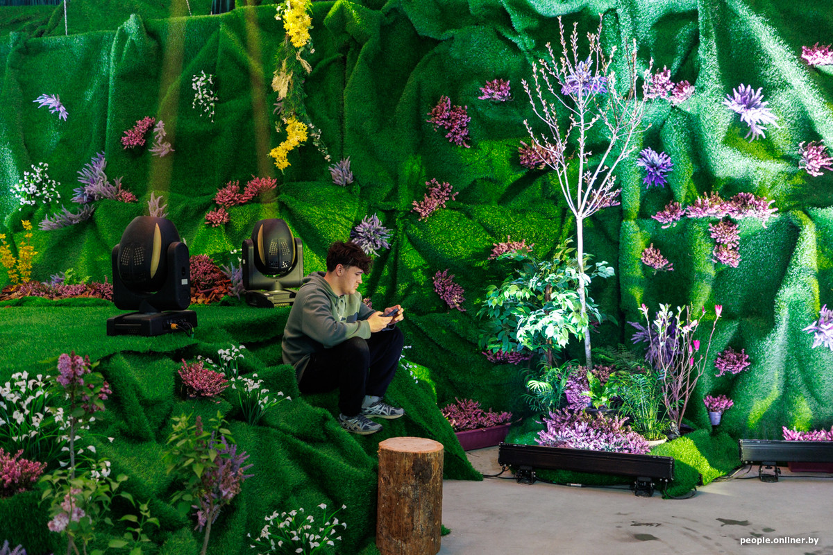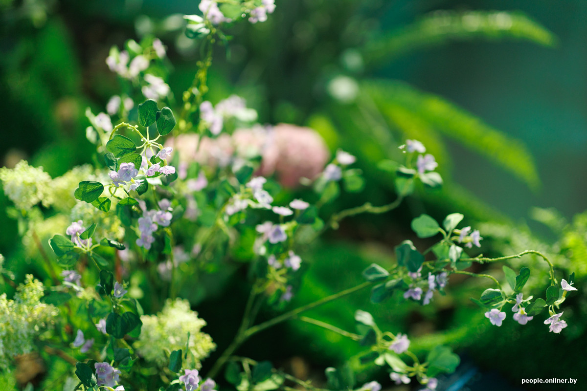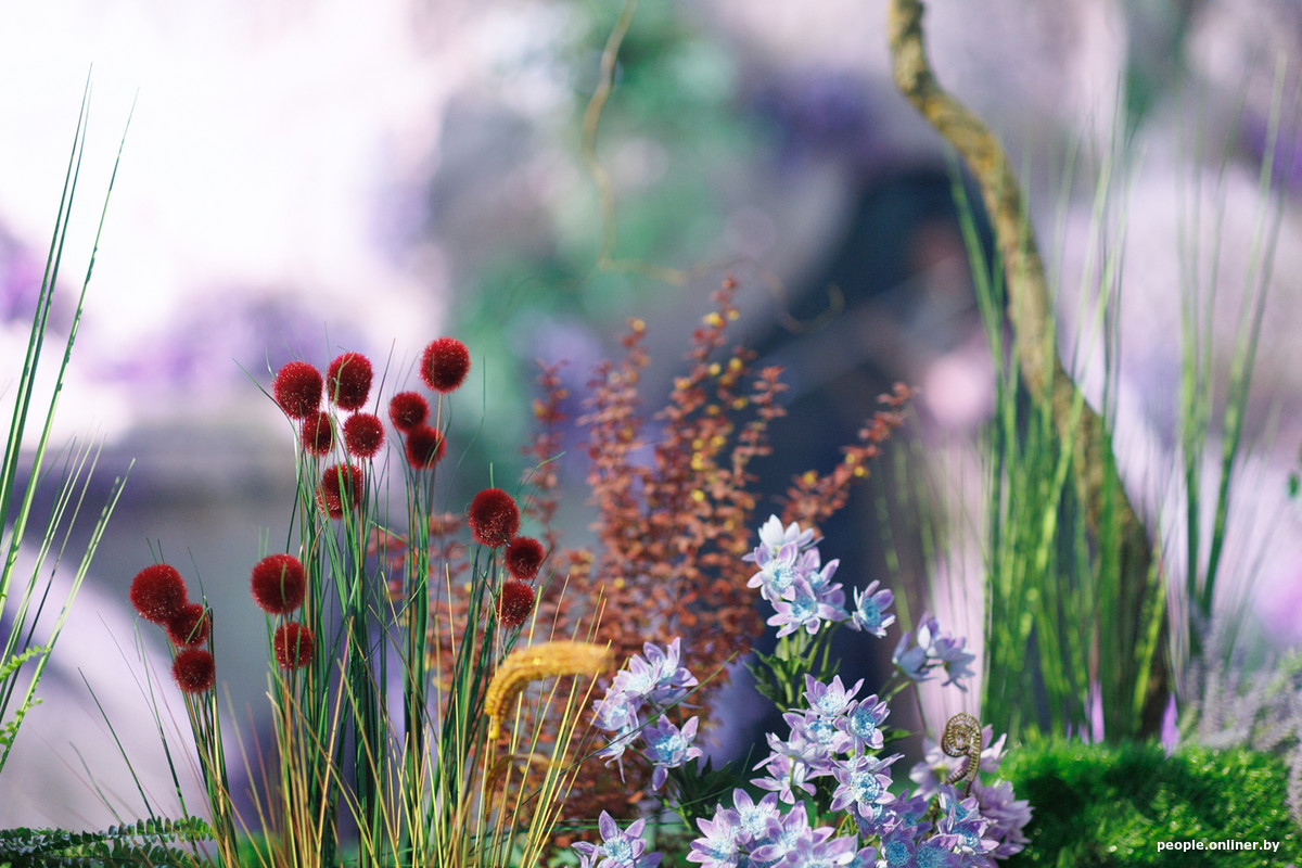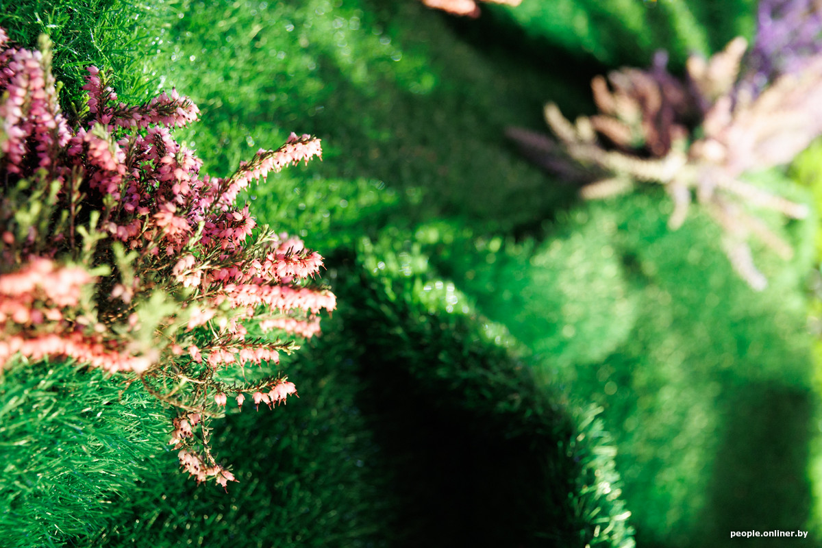 — Здесь должно было быть много живой травы: ее специально срезают и выстилают рулоном. Но за день до срезки планы поменялись и пришлось выкручиваться, — рассказывает одна из авторов проекта Марина. — Примерно 50% растений — это живые кусты и деревья, только вереска примерно 2800 горшков! Еще у нас 4 срезанных дерева, которые мы нашли в таком виде и решили, что они будут жить здесь.