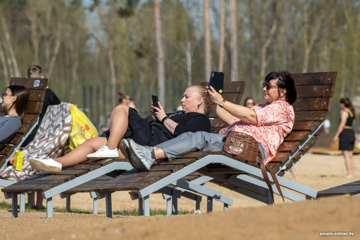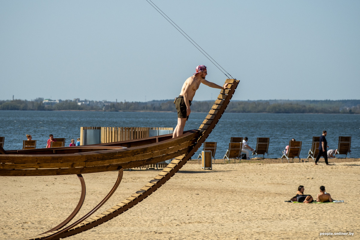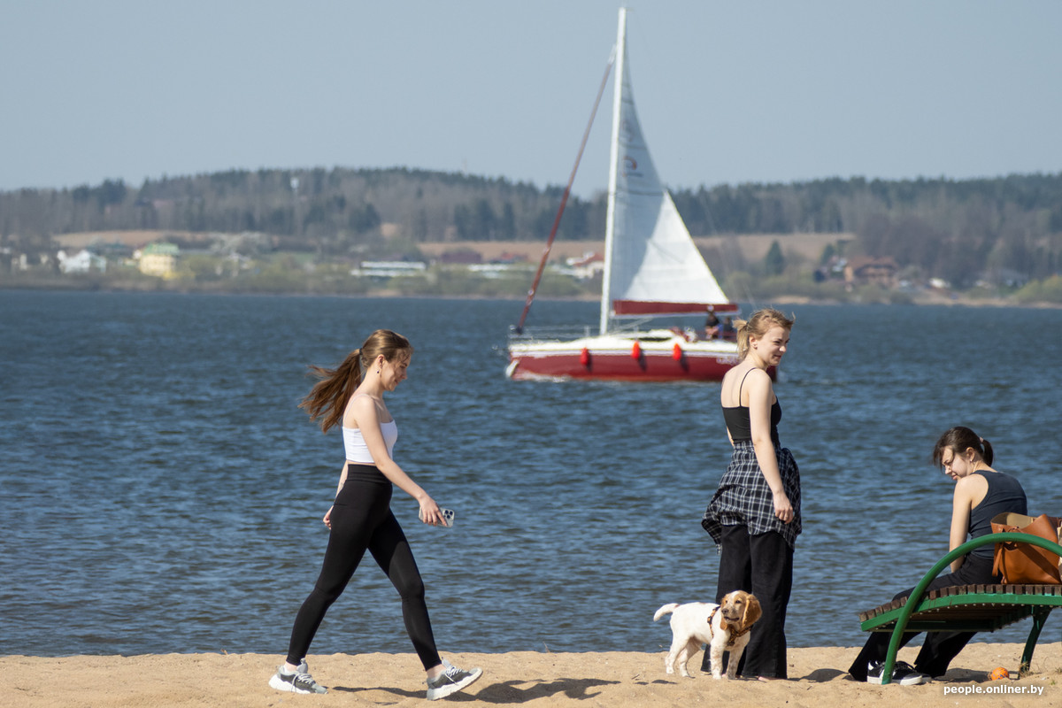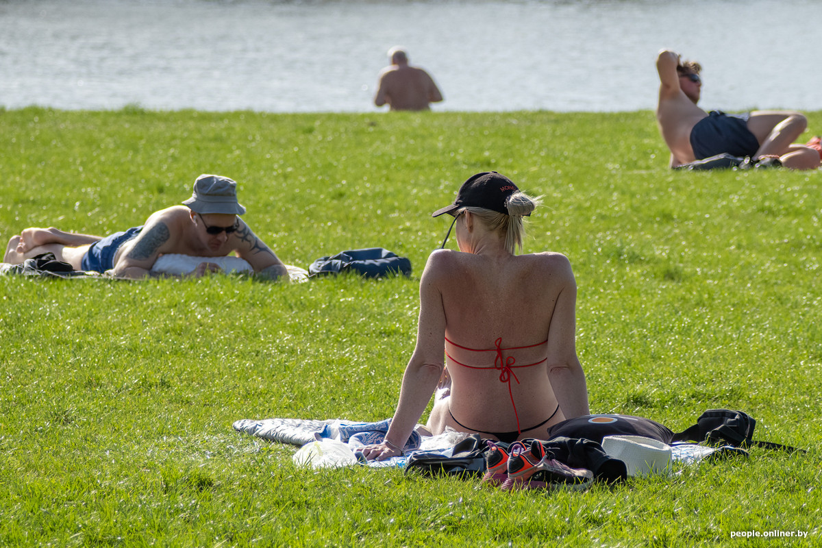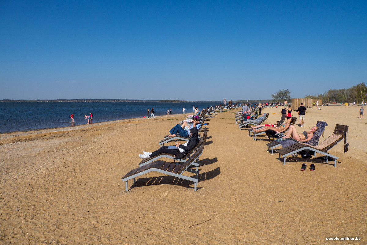 Апрель решил продемонстрировать нам все поры года. В этом месяце мы видели и снег, и дождь, и чистое небо. А в последние дни установилась настоящая летняя погода, которая выпала и на выходные. Отдыхающие от трудовых будней минчане отправились к воде. Плавать еще рано, но позагорать под весенним солнцем уже вполне можно.