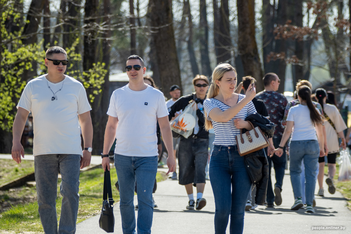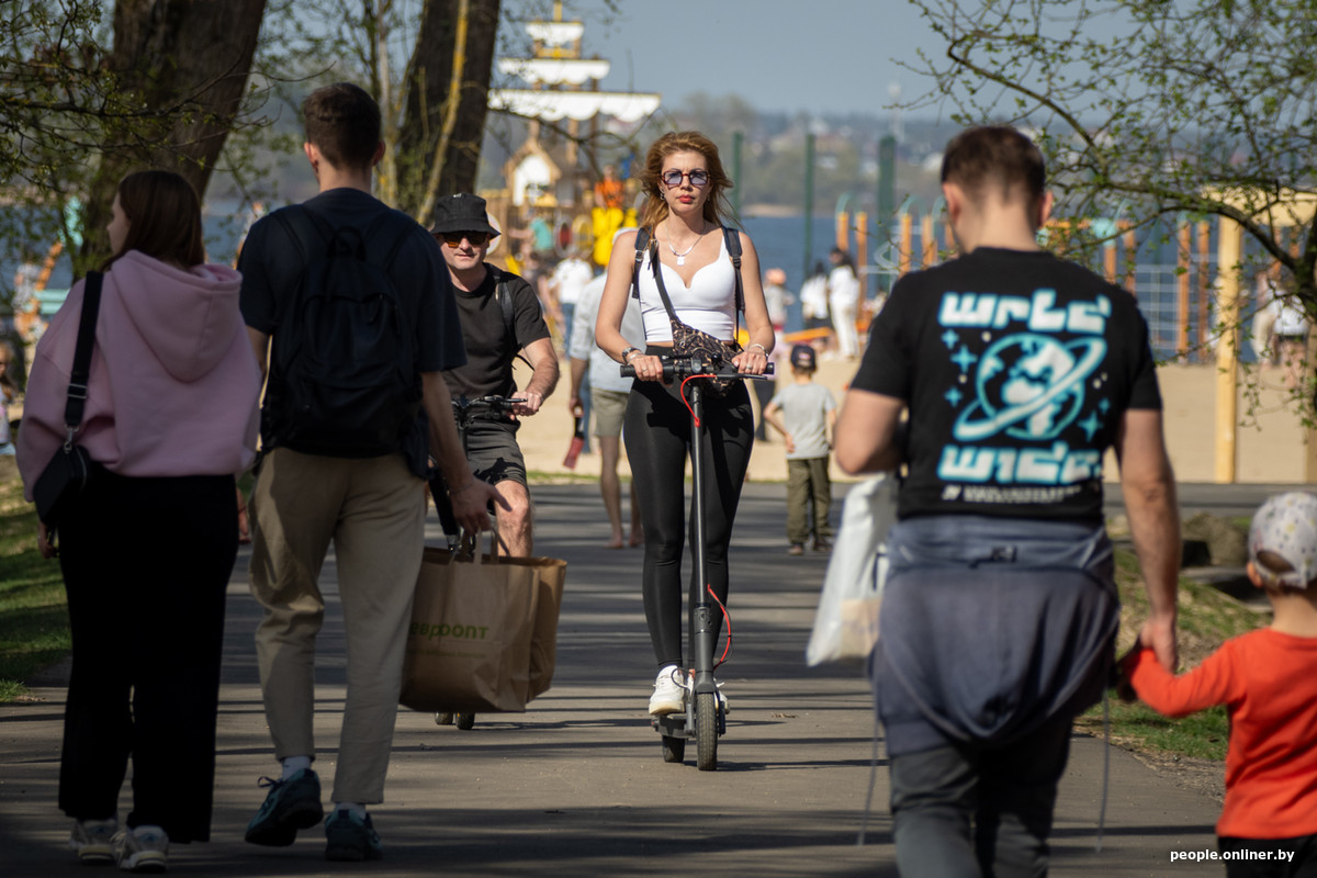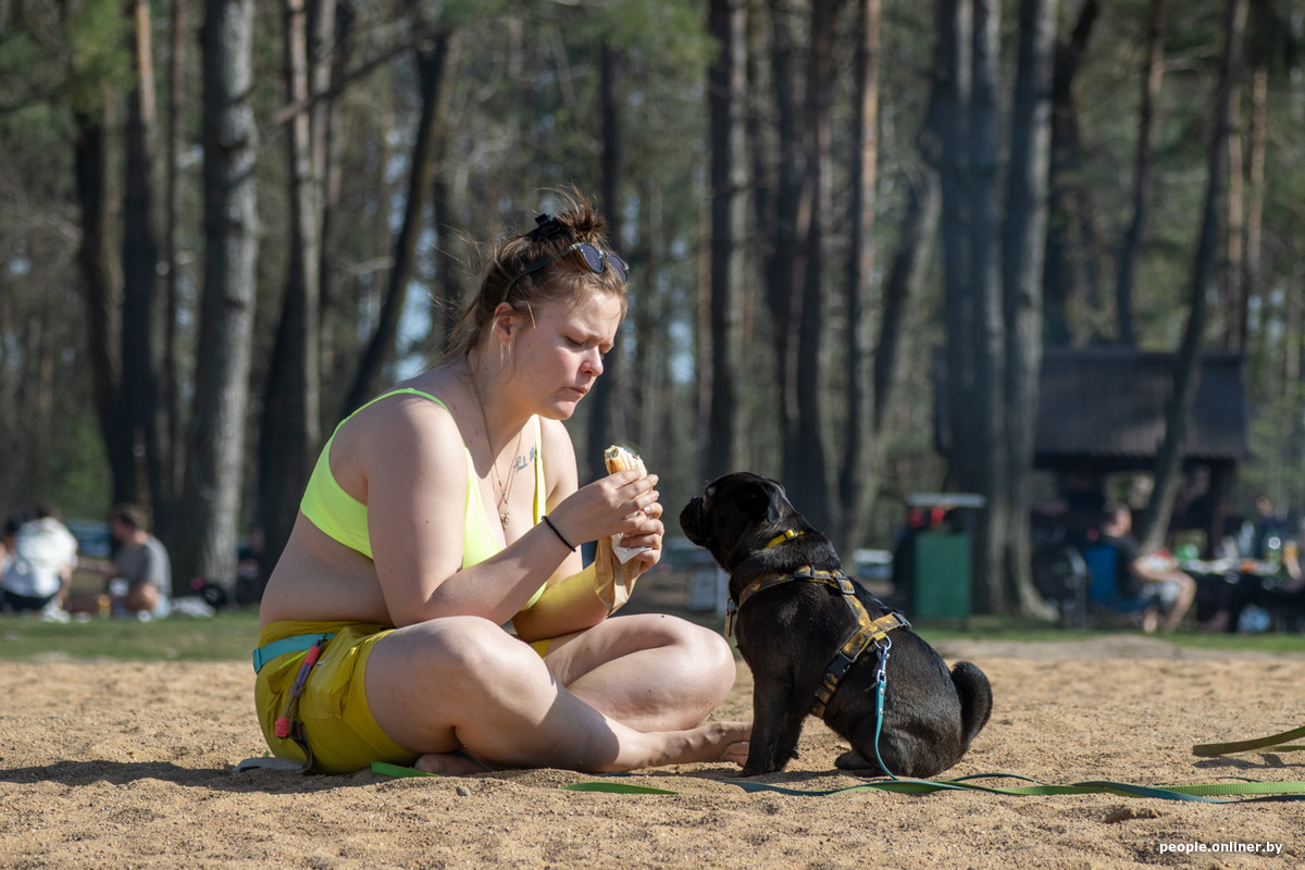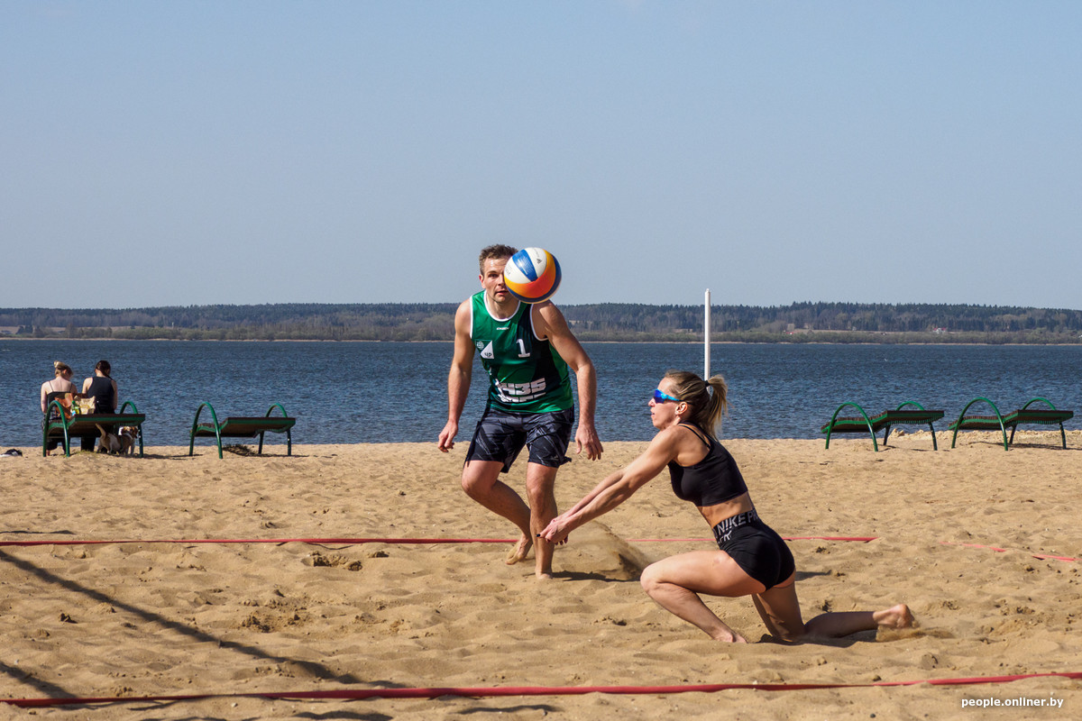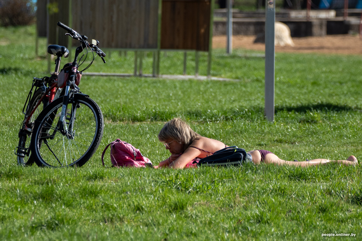 Апрель решил продемонстрировать нам все поры года. В этом месяце мы видели и снег, и дождь, и чистое небо. А в последние дни установилась настоящая летняя погода, которая выпала и на выходные. Отдыхающие от трудовых будней минчане отправились к воде. Плавать еще рано, но позагорать под весенним солнцем уже вполне можно.