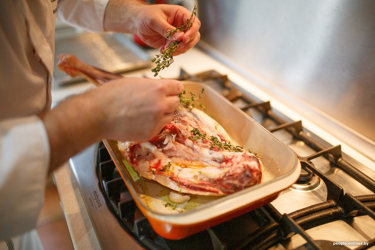 Начав в 9 утра, мы управились примерно за 3,5 часа. Все из задуманного у Тристана получилось, но он советует: если есть возможность, ногу ягненка лучше промариновать ночь — так мясо еще сильнее насытится ароматом специй.