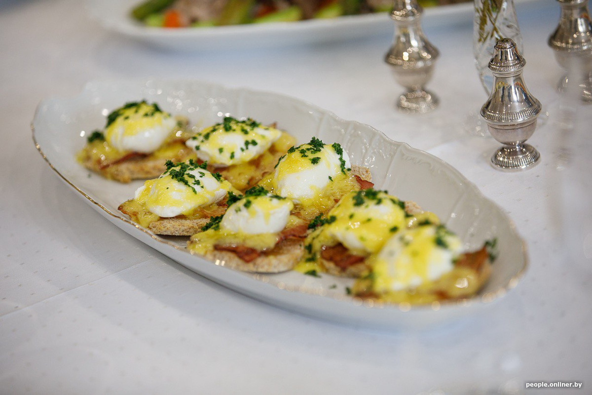 Что будем сегодня готовить? Тристан остановил свой выбор на ягненке, яйцах бенедикт и вандейской бриоши. Белорусский колорит нашему небольшому пасхальному столу он решил придать с помощью фаршированных яиц с красной икрой. Их нередко можно увидеть на праздничных столах Беларуси.