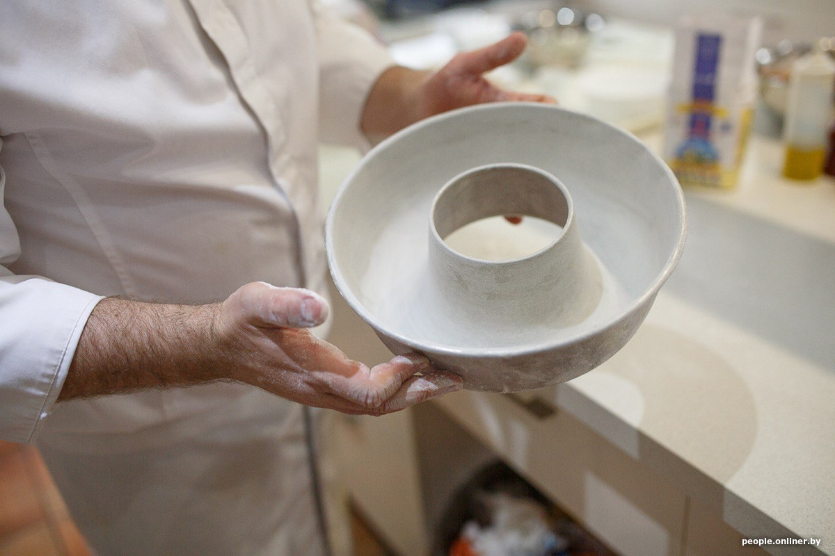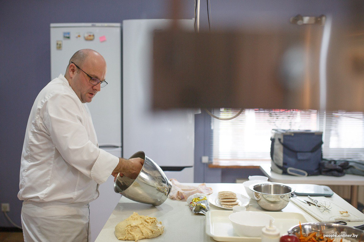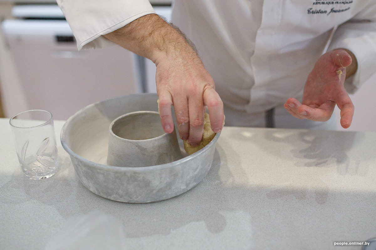 После этого шеф взялся за основу для бриоши. Дождавшись паузы, спрашиваем у Тристана, чем его удивила Пасха в Беларуси.
