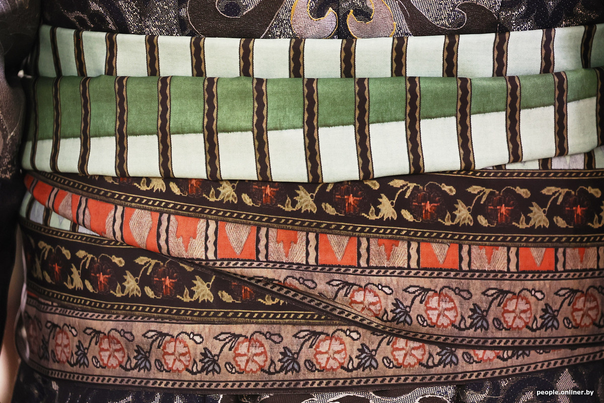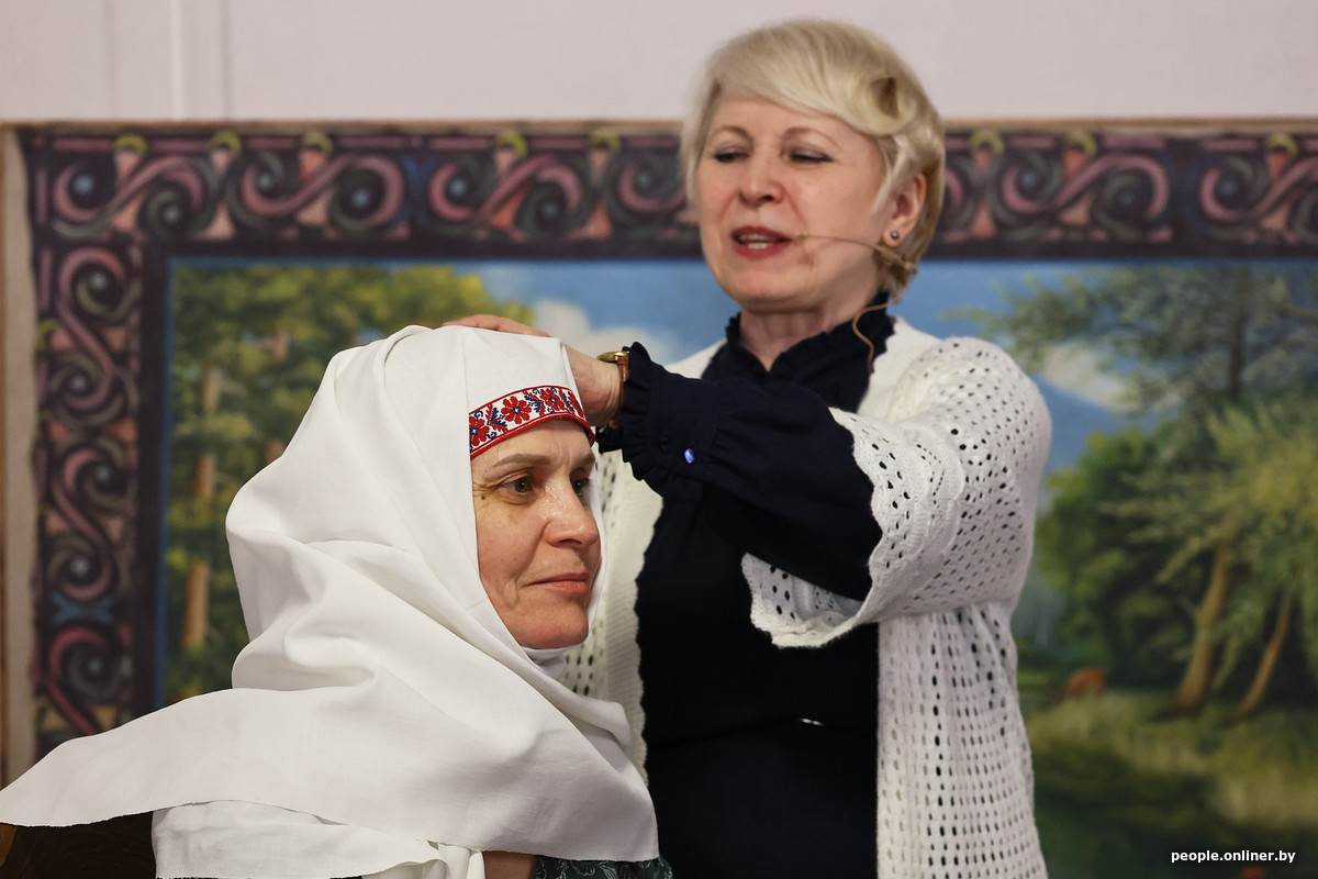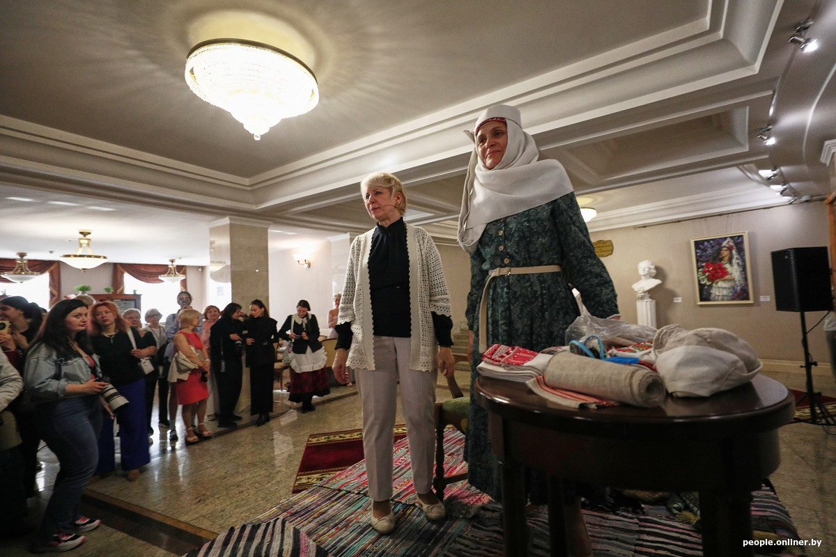А што наконт жаночай моды? Дзяўчат запрасілі прыняць удзел у майстар-класе по завязванні ўнікальнага галаўнога ўбору — наміткі. Рабілі яго, дарэчы, з ільну — незакручаны ўбор нагадвае доўгае палатно. А як прыгожа выглядае! Сапраўды, гэта не проста імгненны трэнд, пра які назаўтра ўсе забудуць, а нешта значна большае.