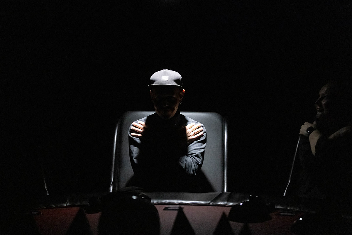 — Только не скидывайте меня, у меня детская травма. Я вспомнил, как свалился со стула в школе и весь класс смеялся, — разряжает обстановку профессиональный ведущий мероприятий (в миру), игрок номер 6.