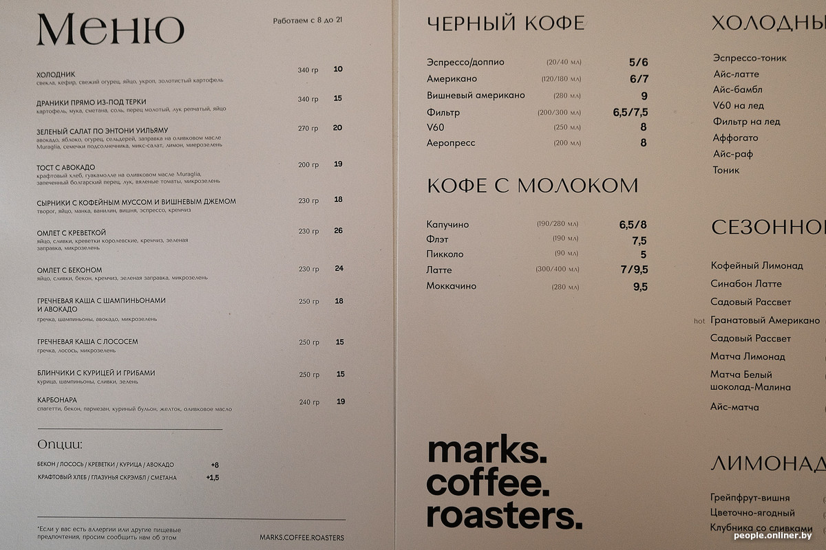 На Золотой Горке в Минске открылась пятая точка сети кофеен «Маркс». Другие заведения сети находятся на улицах Карла Маркса, Богдановича, Киселева и проспекте Независимости. Новая кофейня отличается от других по стилю. Кроме того, здесь открылся собственный обжарочный цех. Кофейня получила название Marks Coffee Roasters. Наш фотограф побывал там в первый день работы.