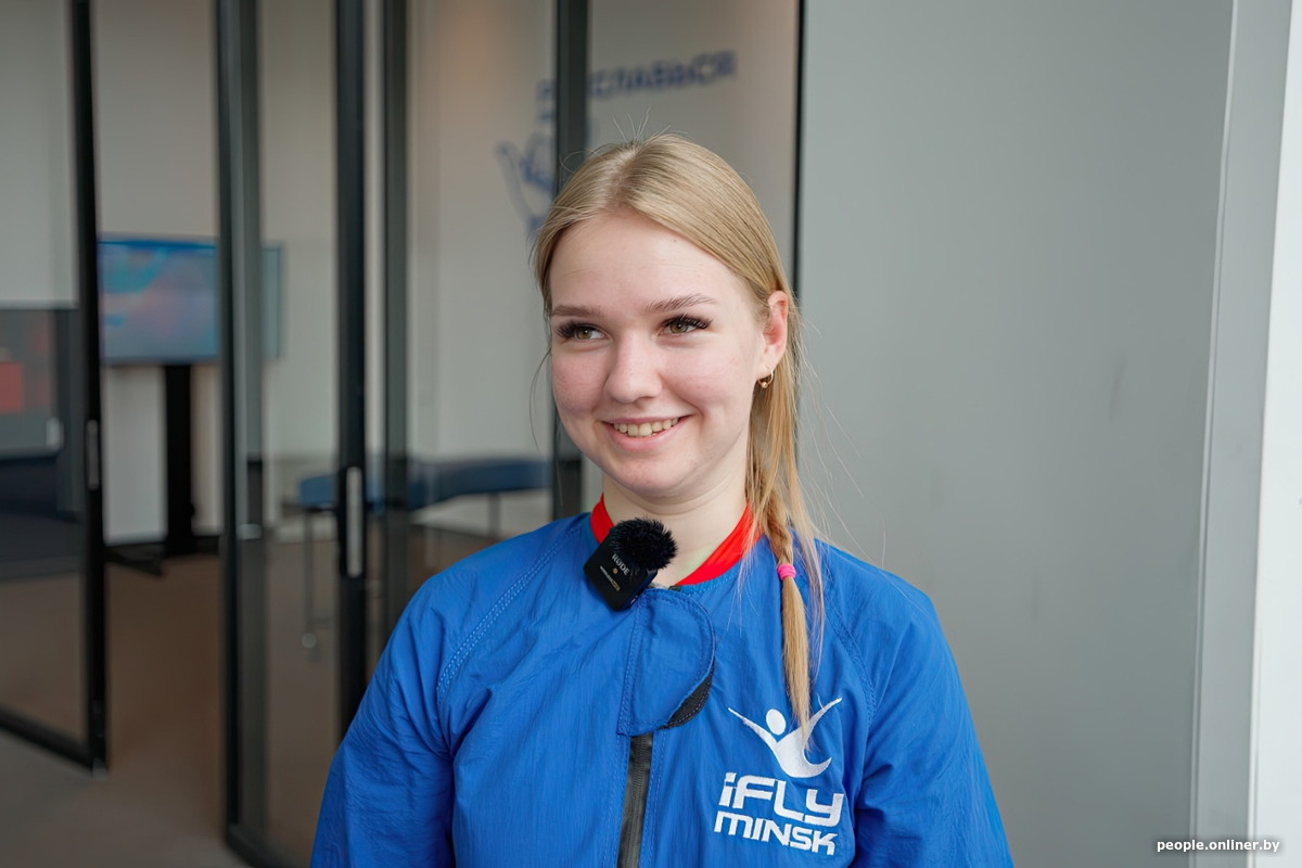 Несмотря на юный возраст (Лизе всего 18) у нее на счету уже 104 прыжка с парашютом (этим спортом она занимается три года). Но вот в аэротрубе она не летала еще ни разу, хотя парашютисты часто отрабатывают там акробатические элементы. Лиза откровенно признается, что испытывает легкое волнение, которого не было даже перед прыжком с трех тысяч метров. Конечно, про страх высоты речи не идет — за это отвечают у нас другие герои. Но без нервного смеха не обходится.