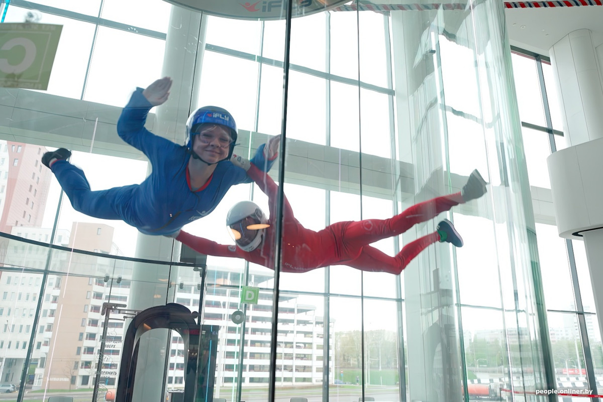 Страха высоты у меня нет, но ко всем экстремальным развлечениям я отношусь с большой настороженностью. По доброй воле вводить себя в состояние огромного стресса? Нет уж, спасибо. Все меняется, когда речь заходит о работе. Стоять на гвоздях, заниматься фитнесом, во время которого бьют током, или пробовать выжигающую тебя изнутри еду — конечно, можно повторить дважды. Этот случай не стал исключением. Пошла бы я летать в аэротрубе сама? Пока в мире существуют развлечения в виде спа, ресторанов и шопинга — вряд ли. Но была ли я категорически против такой возможности? Тоже нет.