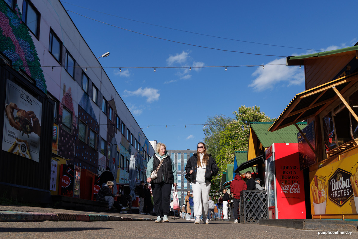 В Минске вновь начала работать стритфуд-площадка «Лучшая улица», которая появилась в 2022 году около часового завода «Луч». Минчан, рванувших на открытие, ждали не только различные точки с едой, но и праздничная программа, приуроченная к открытию сезона. Для детей подготовили аквагрим и мультфильмы, для взрослых — мастер-класс по созданию картин и диджей-сеты. Показываем, как выглядел первый день работы этой площадки.