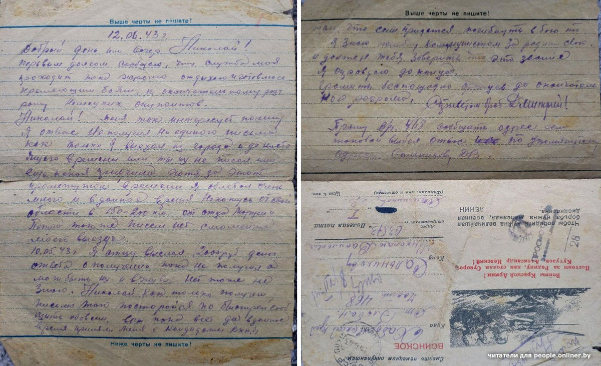 Белорусы хранят в семейных архивах немало драгоценных писем — тех, что были написаны во время Великой Отечественной их родными: отцами, дедами, уже и прадедами. По этим историям можно составить впечатление, как война влияла на личную историю отдельного человека: переворачивала его мир с ног на голову, вырывала из привычных бытовых дел и забот, уносила далеко от родных и близких, наносила тяжелые раны, убивала. Разбираем «Письма с войны», которые в ответ на призыв Onlíner прислали читатели.