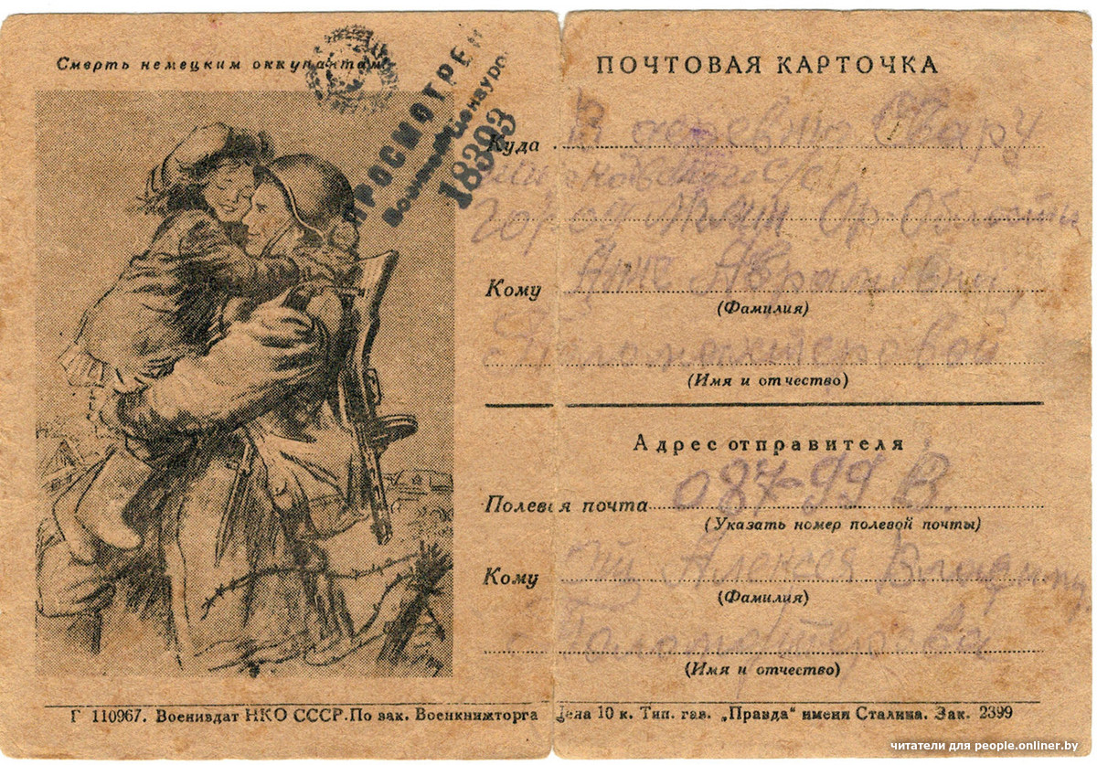 Некоторые солдаты, несмотря на запрет, умудрялись сообщить близким, где они находятся. Например, Семен Трофимович Василенко.