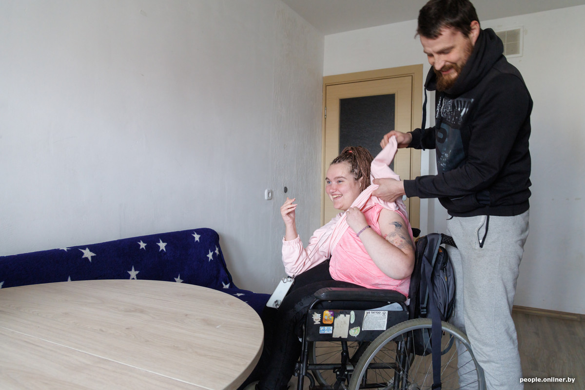— Вот появится электроколяска — и уеду от него. Или заберите его кто-нибудь в гараж работать. Он об этом мечтает, — шутит Даша.