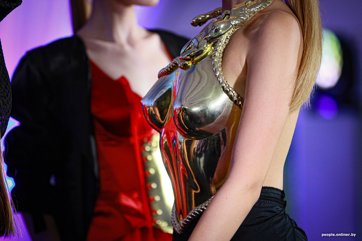Закрывала шоу коллекция «Анатомия» от дизайнеров Татьяны Ефремовой и Ирины Ромбальской. Они придумали образы на стыке современного искусства и высокой моды: летящие шелка, металлизированные ткани, позолоченная кожа и хромированные корсеты.