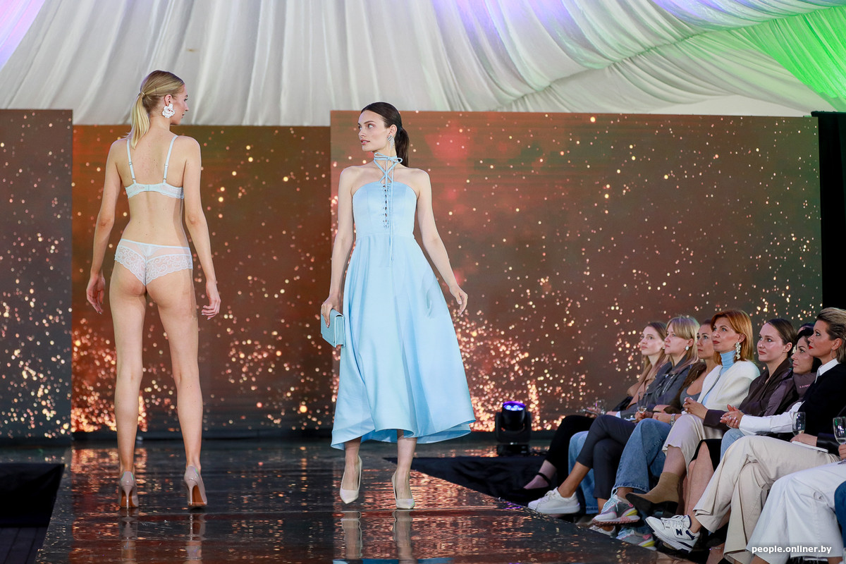 Этот белорусский бренд белья решил засветиться на подиуме целых два раза — совместно с еще одним бельевым брендом Alisee. Кроме купальников, они презентовали непосредственно сами комплекты нижнего белья. Вместе с полуобнаженными девушками дефилировали и нарядные — в платьях бренда Black Queen. Концепция такая: одновременно можно было увидеть и платья, и то, что обычно прячется под ними.