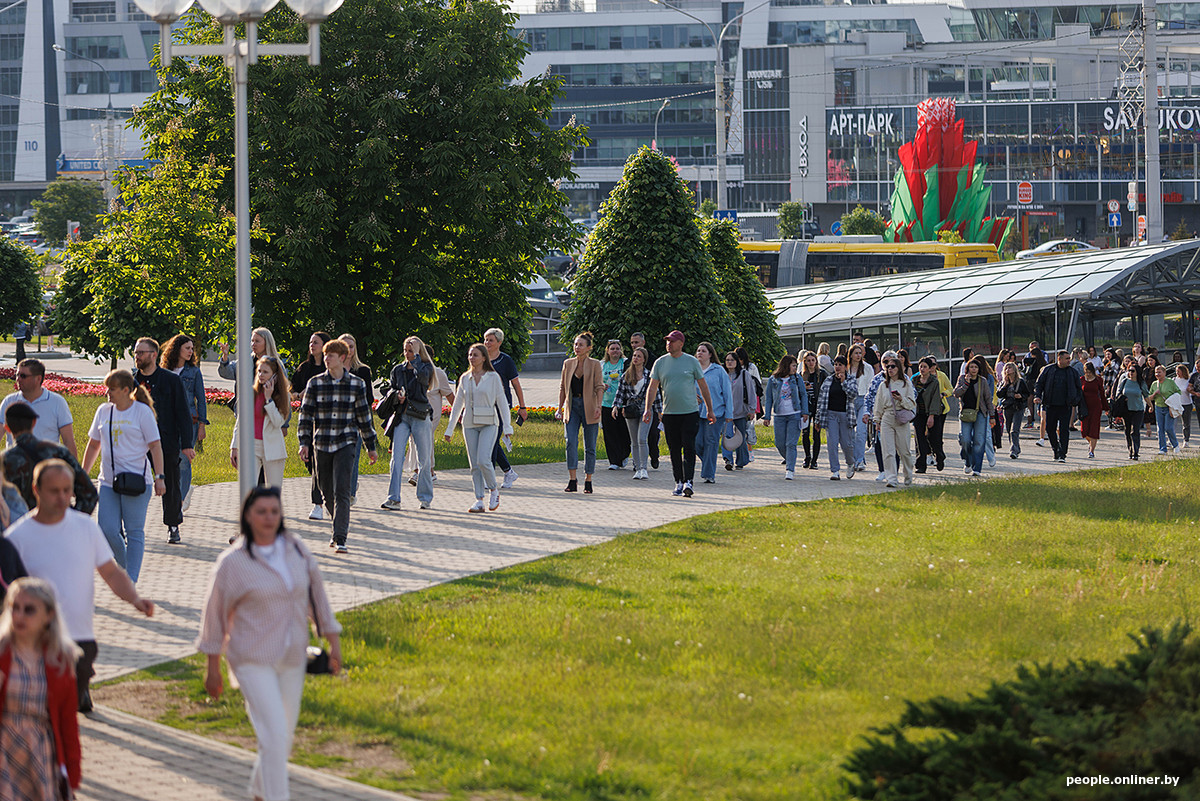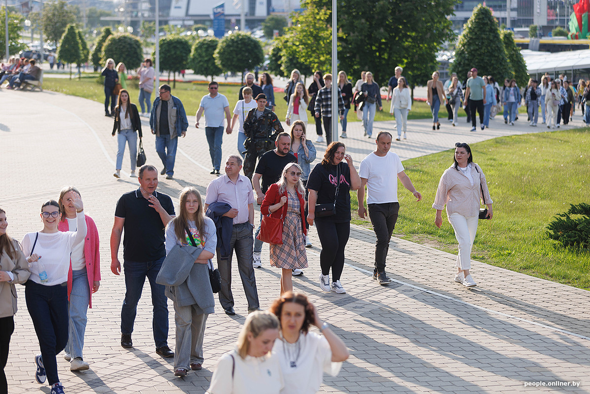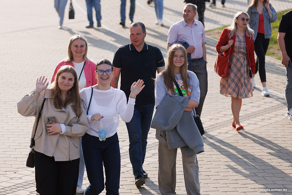Территория у «Минск-Арены» постепенно наполнялась, но обстановка оставалась спокойной. Никто не торопился, не было суеты или давки — наоборот, все напоминало большие дружеские сборы на закате.