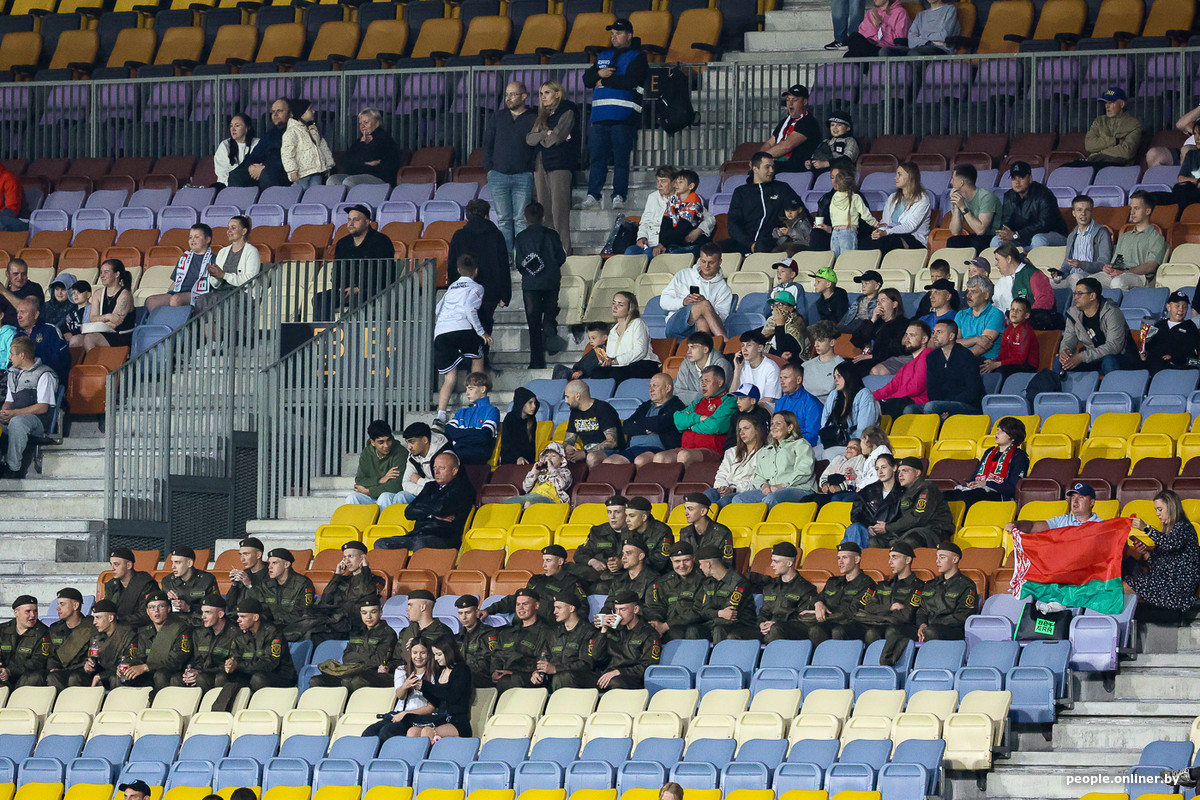 Этим вечером дождь на протяжении нескольких часов беспощадно заливал Минскую область (о последствиях можете прочитать здесь), но дренаж «Борисов-Арены» выдержал, и, хоть и с 30-минутным опозданием, матч все же начался. Болельщиков, правда, собралось немного. Если центральная трибуна еще была заполнена, то на противоположной стороне, как и за воротами, было пустовато. Уже во время игры диктор сообщил, что на матче присутствовало 4 443 зрителя при общей вместимости стадиона в 13 тысяч человек. Примерно в таком антураже прошел первый с 2019 года матч сборной на «Борисов-Арене». В последний раз наша национальная команда играла здесь 11 июня 2019-го против Северной Ирландии.