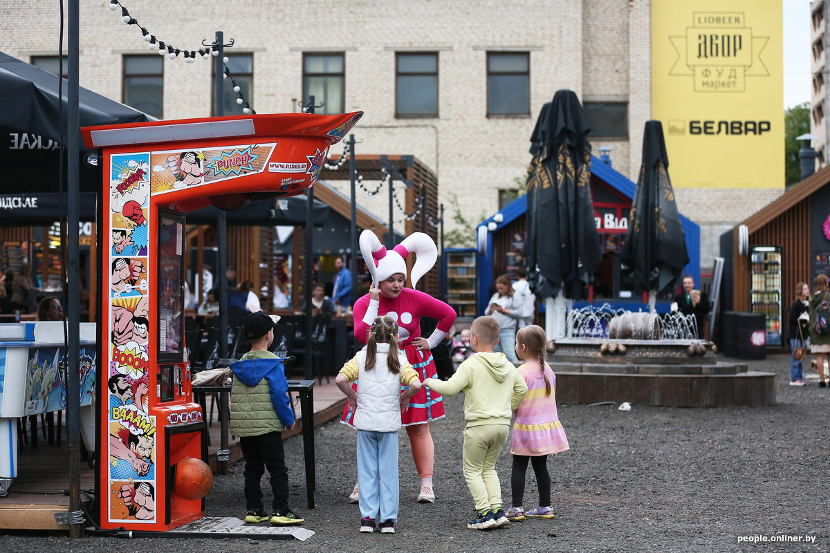 О переезде стритфуд-проекта с прежнего дворика стало известно еще в феврале. Причина — вынужденная: на территории начались масштабные работы. В итоге «Лидбир Двор» уехал, но недалеко: теперь площадка находится за ЦУМом, на территории завода «Амкодор» по улице Гикало. «Лидбир Двор» начал работать в тестовом режиме 22 мая и постепенно раскочегарился. Во время просмотра финала Лиги чемпионов на прошлых выходных здесь уже было многолюдно