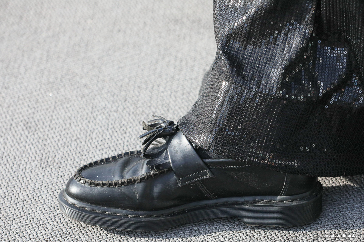 — На мне платье белорусского дизайнера Алены Ацапкиной. Оно было показано на неделе моды в Париже. Я попросил дизайнера переделать платье под мужскую фигуру. Дело в том, что в прошлом я хотел стать священнослужителем. И я воспринимаю это платье как рясу. Вот такая у меня интерпретация.