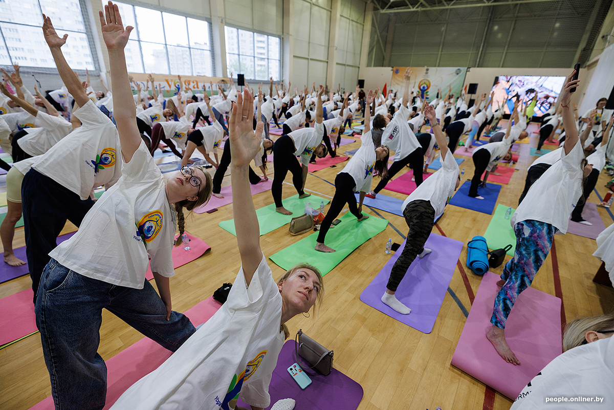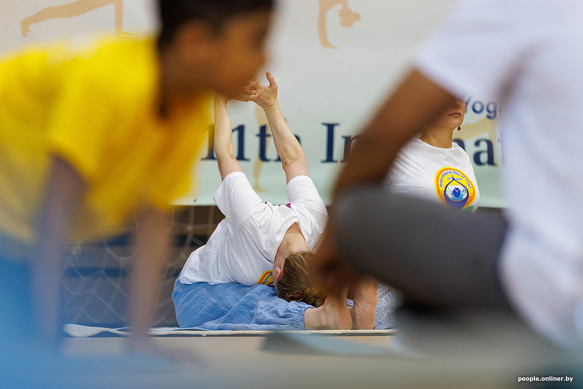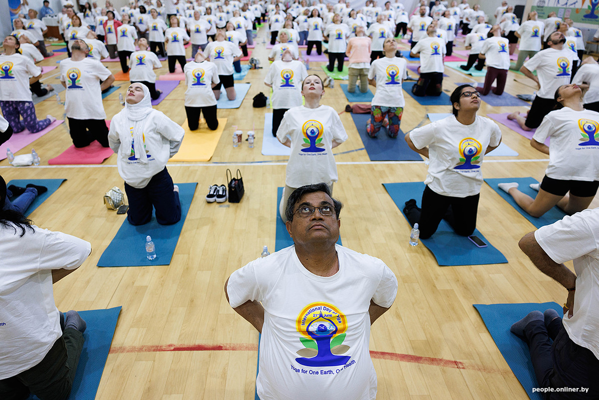 Вчера на полу в одном из столичных спортивных центров две сотни людей в белой одежде сидели в позе лотоса, растягивались на ковриках, ровно дышали и иногда даже делали «ом-м-м-м». Так минчане отметили Международный день йоги.