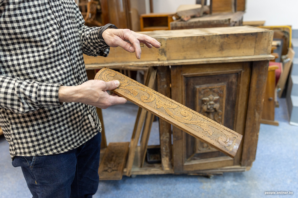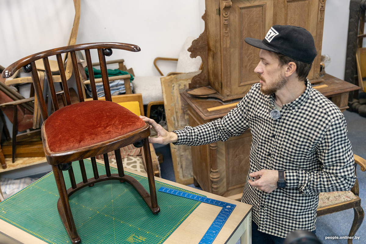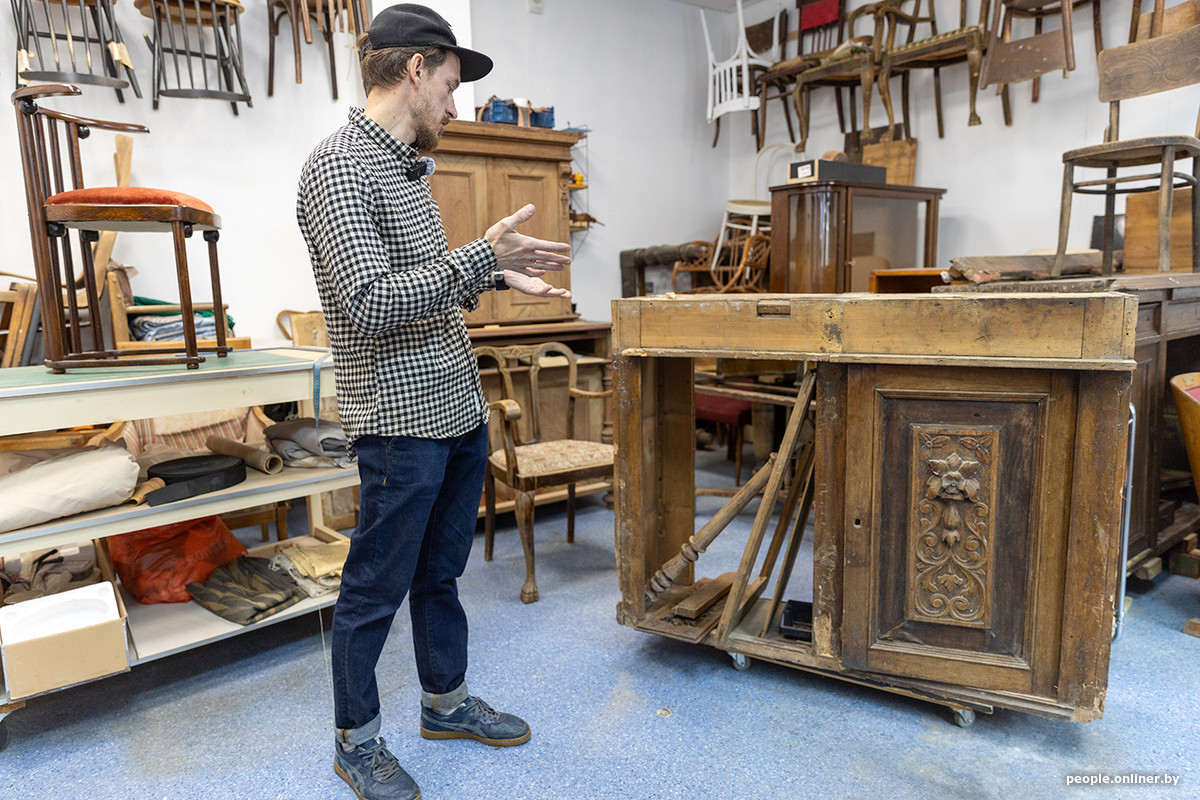 Любовь к старинной мебели, на самом деле, у Саши давно в крови. Еще лет десять назад он собственными руками восстановил бабушкины кресла шестидесятых годов на даче. Причем получил от этого удовольствие. Однажды Саша случайно зашел в один большой антикварный магазин в Минске — и дальше все как в тумане.