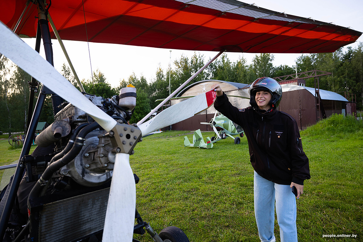 — Это единственное место в Минске, где можно полетать на мотодельтаплане или гироплане. В чем разница? Гироплан — это такой небольшой закрытый вертолет. А мотодельтаплан — это больше про эмоции. Он полностью открытый: ветер в лицо, небо вокруг. Мы шутим между собой, что самолет возит тело, а мотодельтаплан — душу.