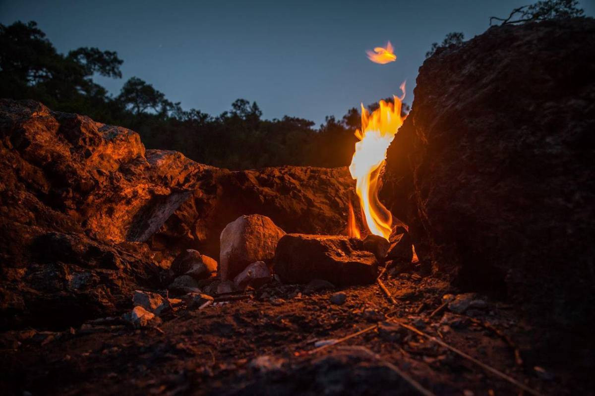 В Турции хватает природных диковинок, но пылающая гора Химера (Янарташ) — явно из разряда «да ну, не может быть». Здесь прямо из-под земли вырываются языки пламени. Без дров и без фокусов. Если верить легенде, это дыхание побежденного чудовища Химеры, в пасть которого Беллерофонт когда-то вонзил свинцовое копье. По факту это метан и другие газы, просачивающиеся через породу.