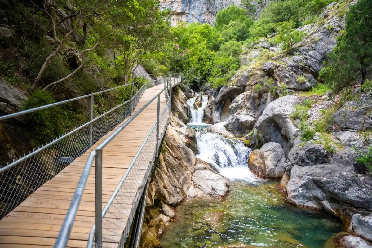 Активностей — множество. Самый спокойный вариант — пешая прогулка по части Ликийской тропы. Она проходит через каньон, уходит вверх по склону и открывает отличные виды: водопады, скалы, густая зелень.
