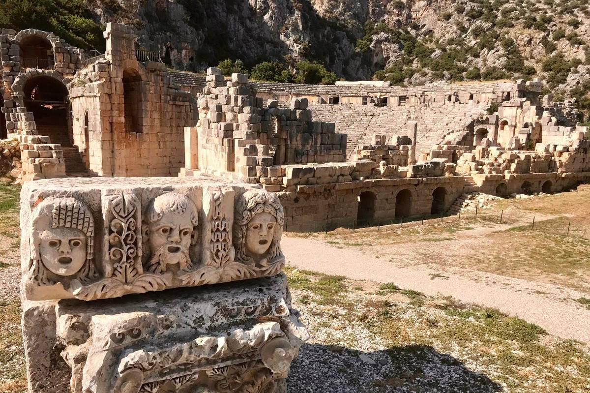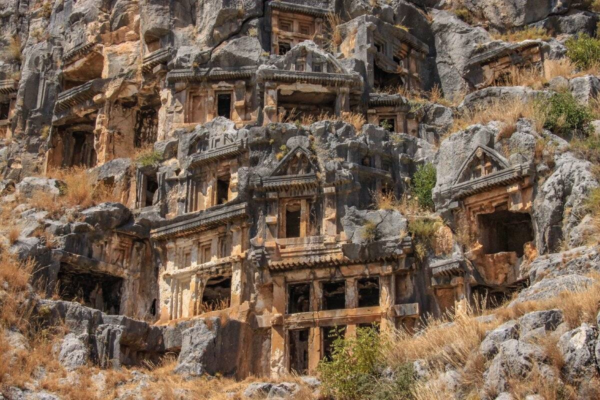 Миру больше 2,5 тыс. лет. Это один из главных городов древней Ликии, а сейчас — тихий археологический памятник на краю турецкого Демре. Главная причина ехать сюда — гробницы, высеченные в скалах. Ликийцы верили: чем выше над землей упокоится тело, тем быстрее душа доберется до неба.