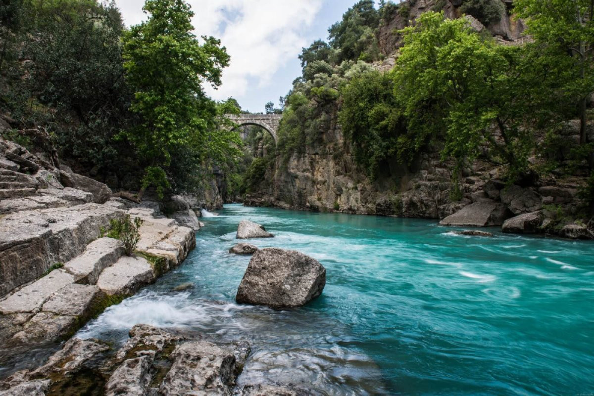 В Кёпрюлю все наоборот: здесь природу не разглядывают с обзорной площадки, а ощущают снизу, с уровня воды. Через весь каньон протекает река Кёпрючай, и именно по ней несутся на рафтах, каноэ и надувных лодках.