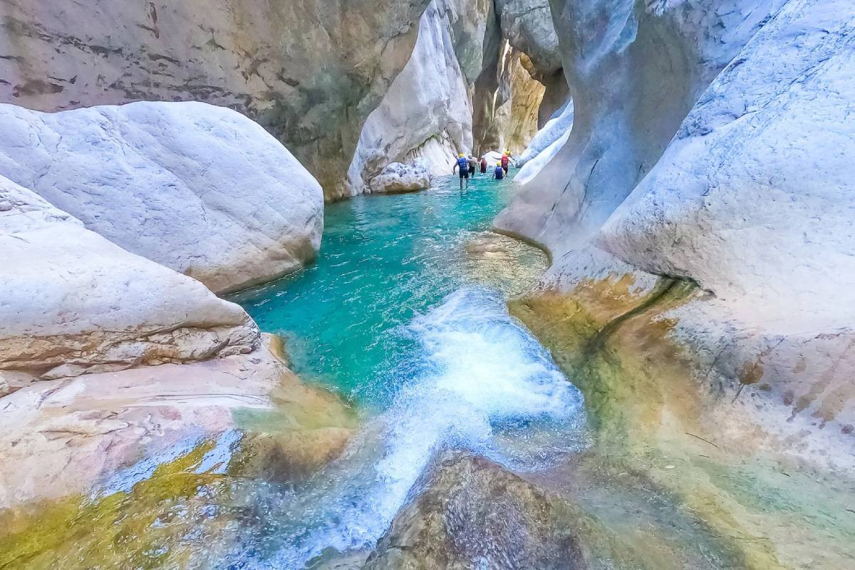 Каньон Гёйнюк — это не просто природная достопримечательность, а скорее полноценный экшен-парк под открытым небом. Добираться сюда просто: на машине — около 15 минут от Кемера. Парковка расположена прямо у входа.