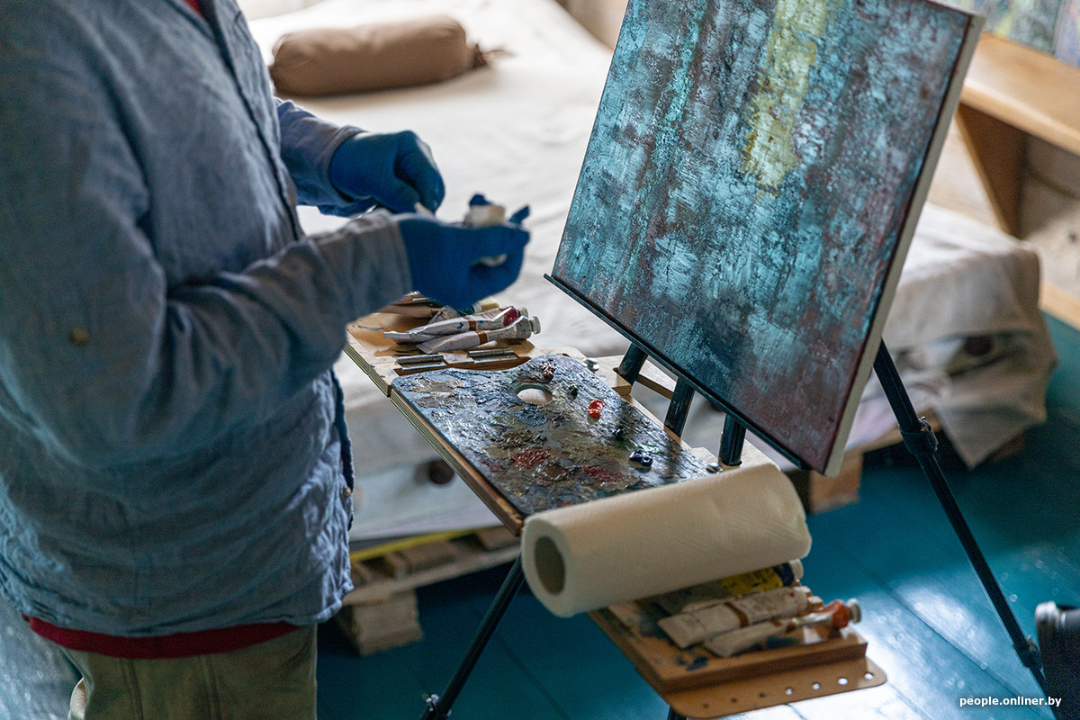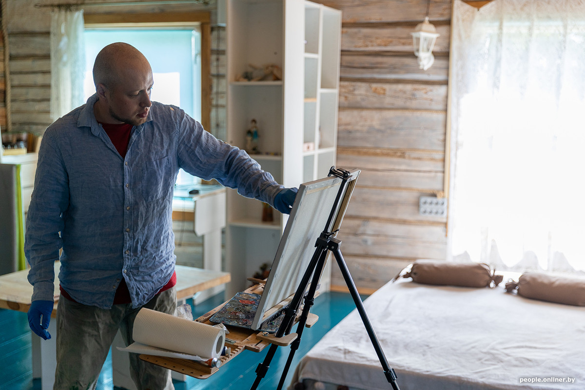 Основную часть времени Никита работает в городском озеленении, а оставшиеся силы оставляет на хобби — уже семь лет занимается абстрактной живописью. И вот здесь, в деревне, к нему снова вернулось вдохновение.
