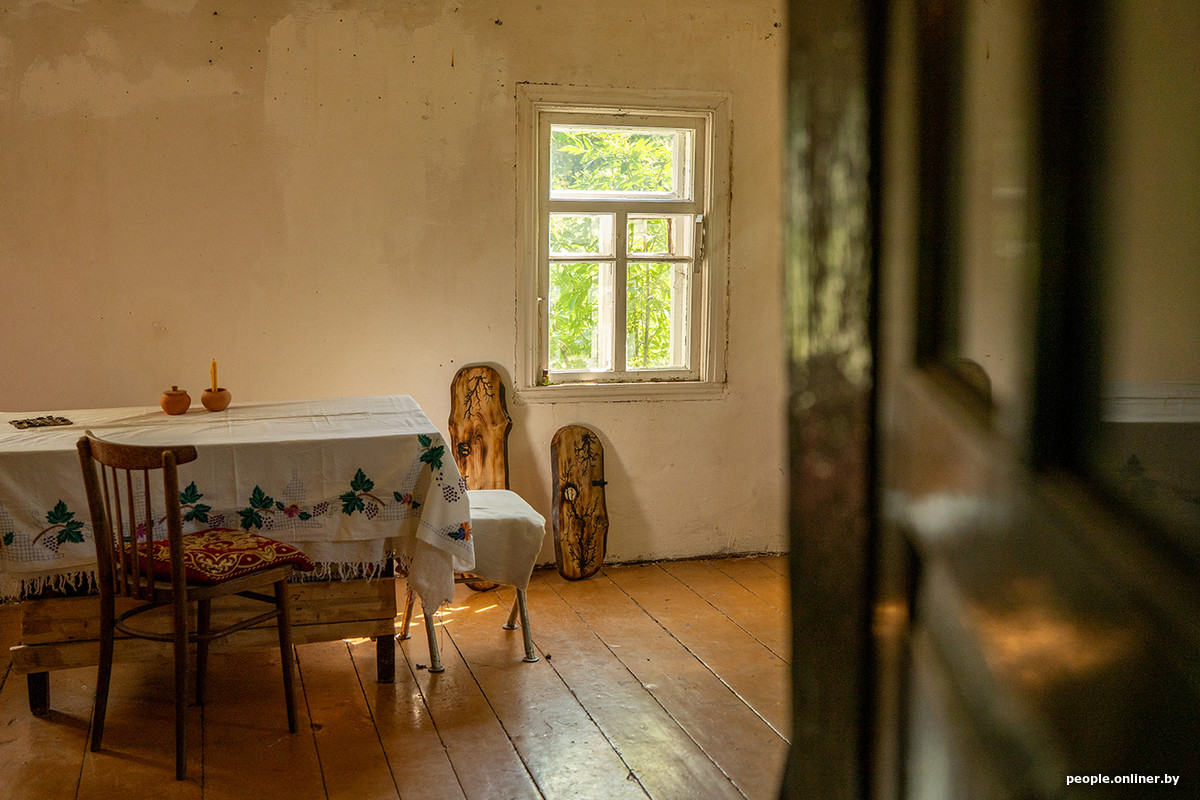 Напоследок попадаем в дом на отдельном хуторе. С главной дороги его даже не видно за деревьями и холмами. Художник Ярослав поселился в «Чудесных холмах» год назад. Сначала он приехал сюда с подругой «просто посмотреть» — и решил остаться. Живет мужчина прямо у леса. За окном — зайцы, косули, аисты, иногда приходят лоси. Кабанов не видел, но, говорят, бывают.