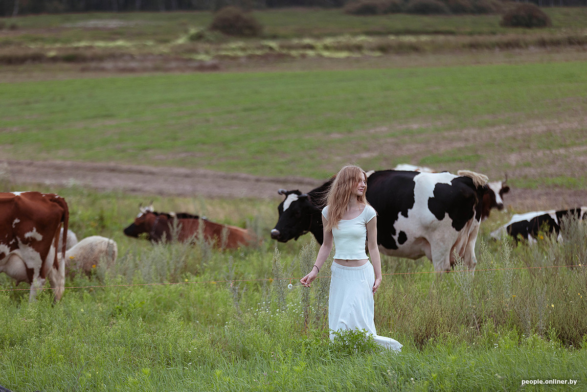Считается, что успешные модели обитают исключительно в обществе, где пьют просекко из хрустальных бокалов с отставленным мизинчиком и даже чихают «на богатом», звеня ювелиркой на запястье. Может, в основном оно и так, но сейчас, например, мы находимся в поселке Стрешин в гостях у 20-летней Алеси. И перед нами стадо из десяти коров. Последние шесть лет девушка регулярно путешествует по миру, снимаясь для люксовых брендов вроде Dior, Louis Vuitton, Versace и Tiffany. А потом приезжает в родную деревню, где, помимо семьи и вышеупомянутых буренок, ее ждут лошадка Фрида, баран Андрюха, любимый дуб и еще много чего интересного. Все это так сильно рвет шаблон, что мы решили, что просто обязаны познакомить вас с ней.