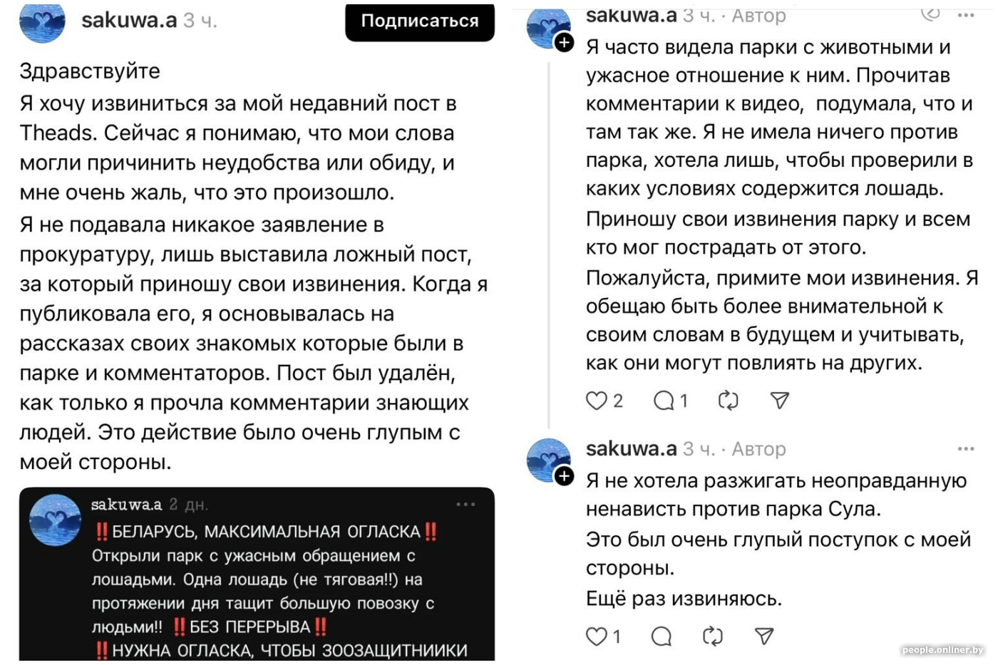 Так, девушка написала, что «не подавала никакое заявление в прокуратуру, лишь выложила ложный пост», за который и приносит извинения. Оказалось, что когда она его публиковала, то «основывалась на рассказах своих близких знакомых, которые были в парке», а также комментаторов.