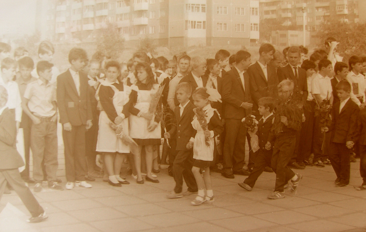 Таким 1 сентября запомнилось Дмитрию (он же GooDMooD): «На фотографии я посередине, где мальчишки сидят за партой. Справа мой младший брат, ему на тот момент 3 года, по левую руку мой друг с детского сада Дима. Фотография, точнее слайд, сделана в Серебрянке 1 сентября 1985 года моим отцом, который был профессионалом-любителем. Помню, в тот день было очень тепло, даже жарко. Как и для любого первоклашки, это был волнительный момент. Я очень ждал школу: она была с английским уклоном, язык начинали изучать с первого класса».