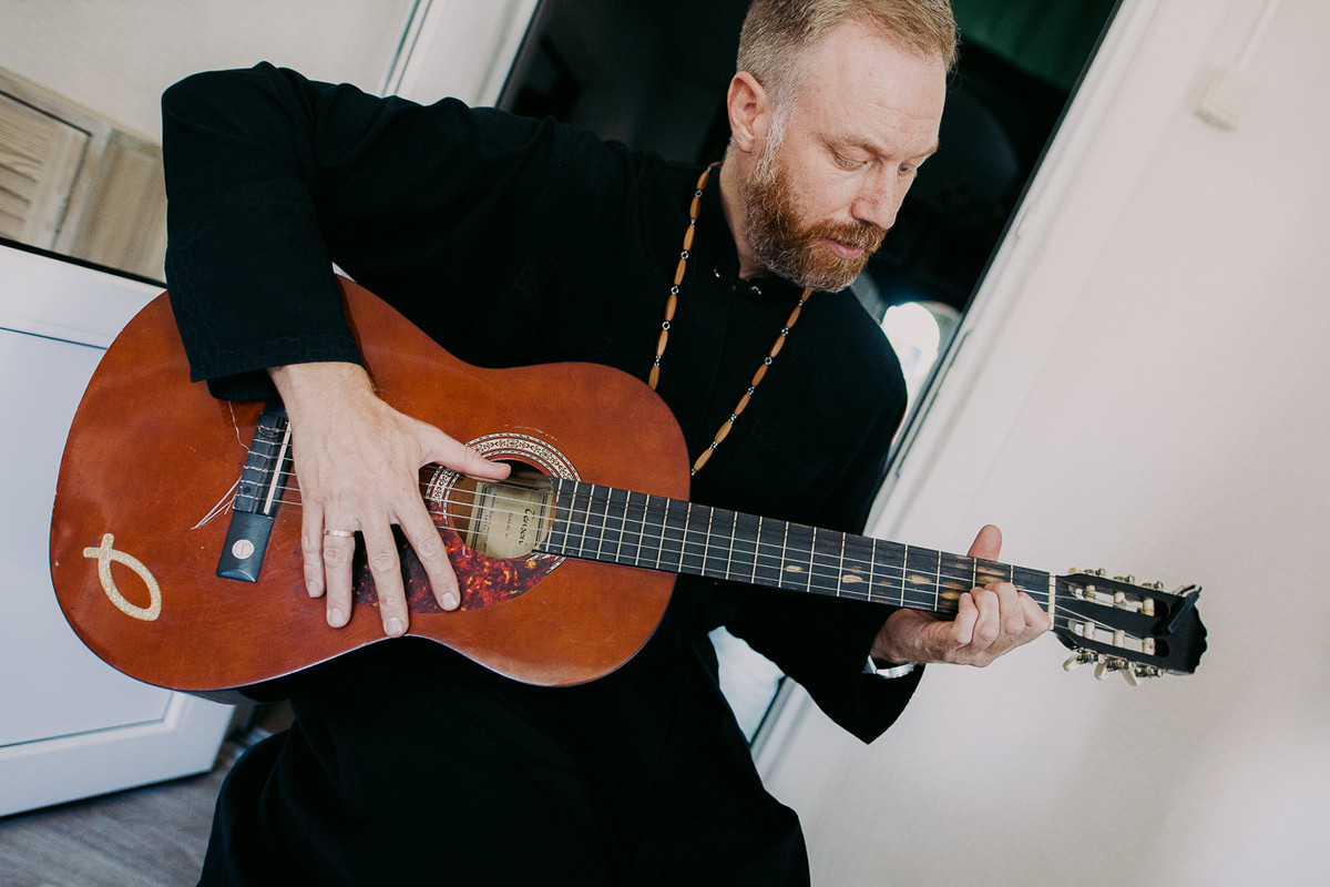 Напоследок о. Алексей сыграл нам на гитаре — не идеально, по-простецки, но как умеет. Вроде бы что-то из группы «Пилот». Спросили, что он будет делать, когда на него подпишется миллион человек. Он посмеялся и сказал, что то же самое. А потом подумал, что было бы классно своими руками построить храм на донаты от подписчиков и показать весь процесс в роликах. И дело хорошее сделается, и контента веселого будет много. Нет, ну все-таки что за светлая голова! SMM-отдел грекокатолической церкви все же заслуживает премии.