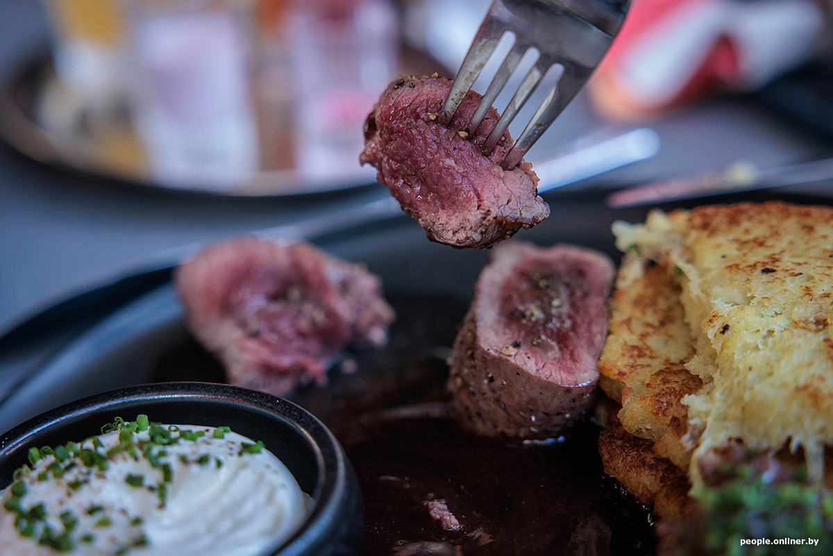— Особенности такого мяса в небольшой характерной для дичи горчинке. Искушенная минская публика, как оказалось, на дичь довольно падкая. Также такое мясо нужно готовить rare, то есть почти сырым, но теплым, — поясняет шеф.