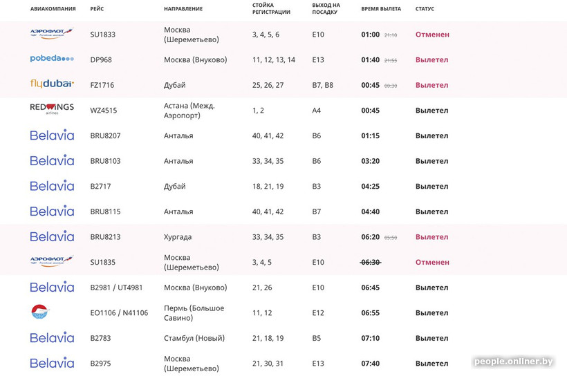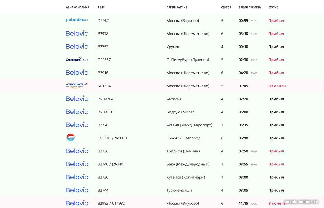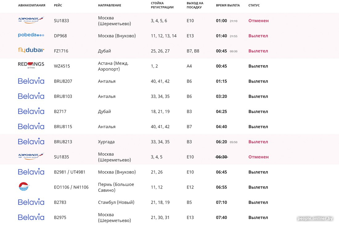 Отменяются рейсы и в обратном направлении. Так, из Шереметьево в Минск не вылетело три рейса компании «Аэрофлот». Также сообщается о задержке вечернего рейса из Санкт-Петербурга (Пулково) в Минск, полет которого обеспечивала авиакомпания «Победа».